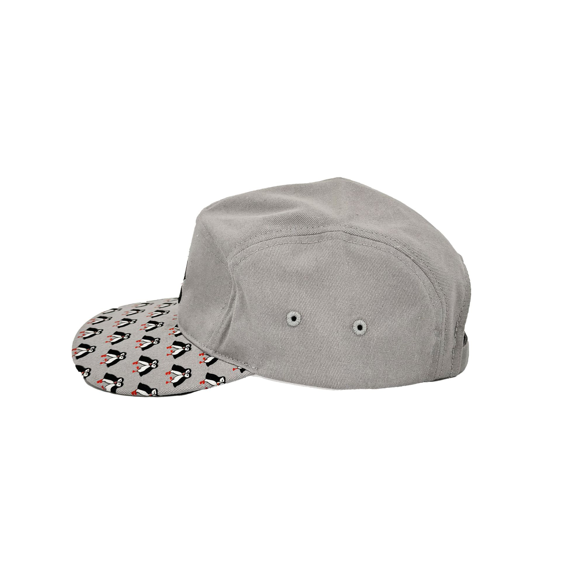 Une casquette gris clair illustré de macareux, l'oiseau emblématique de la LPO !