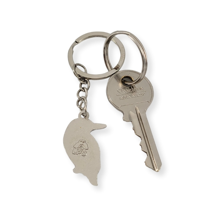 Porte-clés Martin-pêcheur très réaliste en métal argenté.