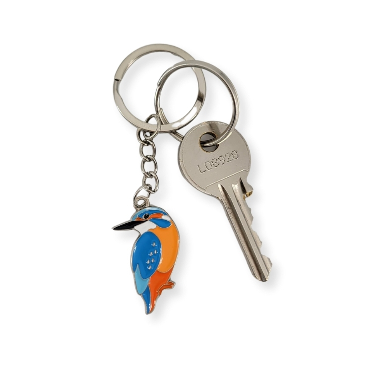 Voir plusPorte-clés Martin-pêcheur très réaliste en métal argenté.