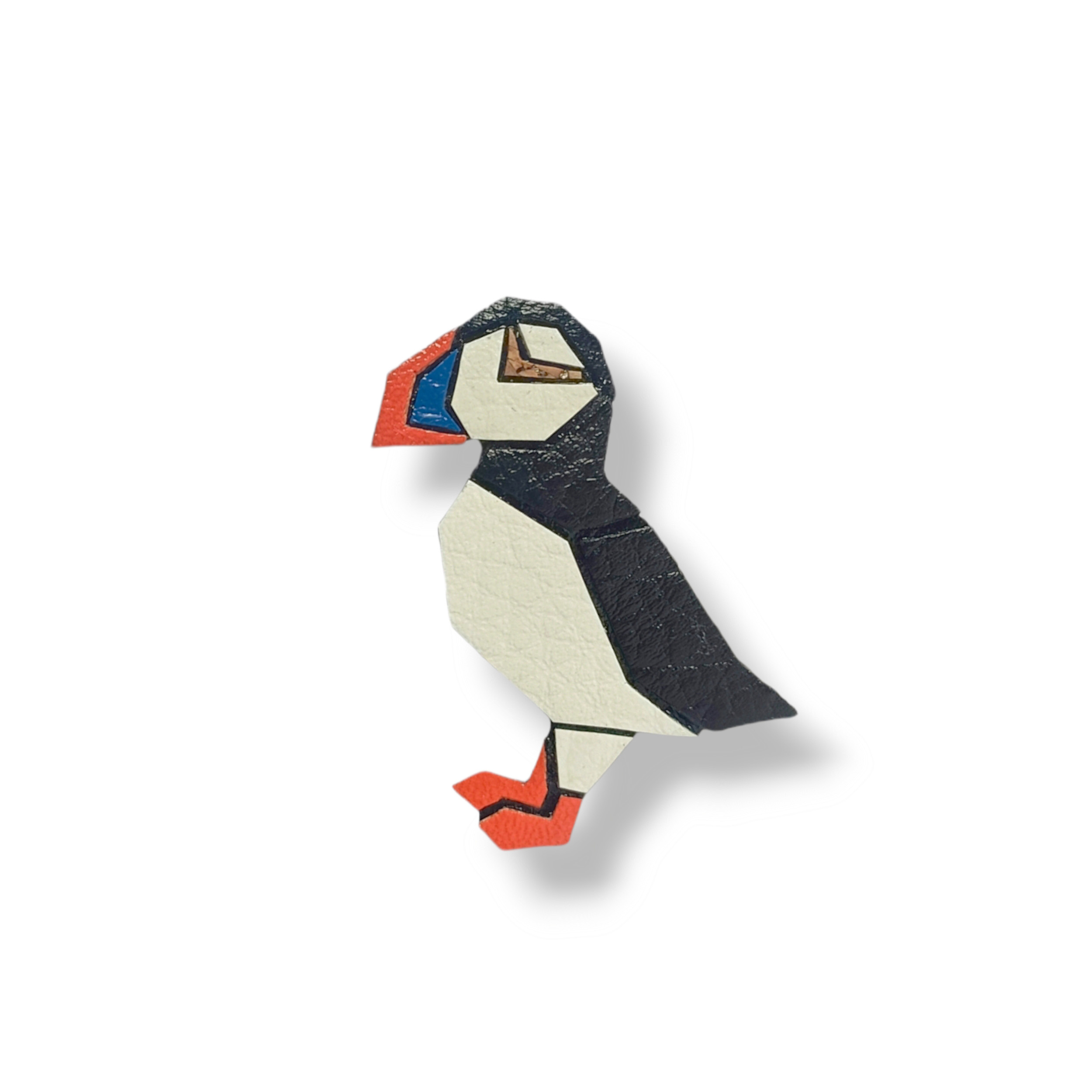 La broche en cuir végétal et simili cuir Albert le Macareux est minutieusement assemblée à la main pour vous offrir un accessoire vestimentaire unique, original et rempli de savoir-faire.
