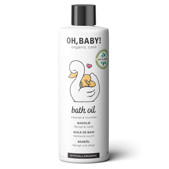 Ajoutez l’huile de bain dans l'eau et mélangez soigneusement. Les produits Oh, Baby ! sont adaptés aux nourrissons dès la naissance. L'huile peut aussi être appliquée directement sur les zones sèches ou sur tout le corps de bébé avant le bain pour une hydratation supplémentaire. Attention, avec l'huile, la peau peut devenir un peu glissante. Il n'est pas nécessaire de rincer l'huile.