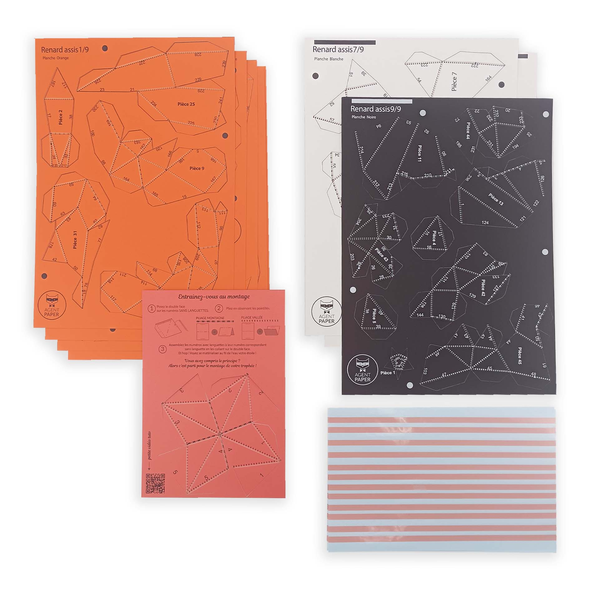Tout le nécessaire est fourni dans un kit contenant 9 planches de papier et de l'adhésif double face. Des instructions simples, étape par étape, facilitent le processus de montage. Chaque feuille est soigneusement sélectionnée pour assurer une expérience de pliage agréable pour un bel effet de volume. (Temps de montage 3h)