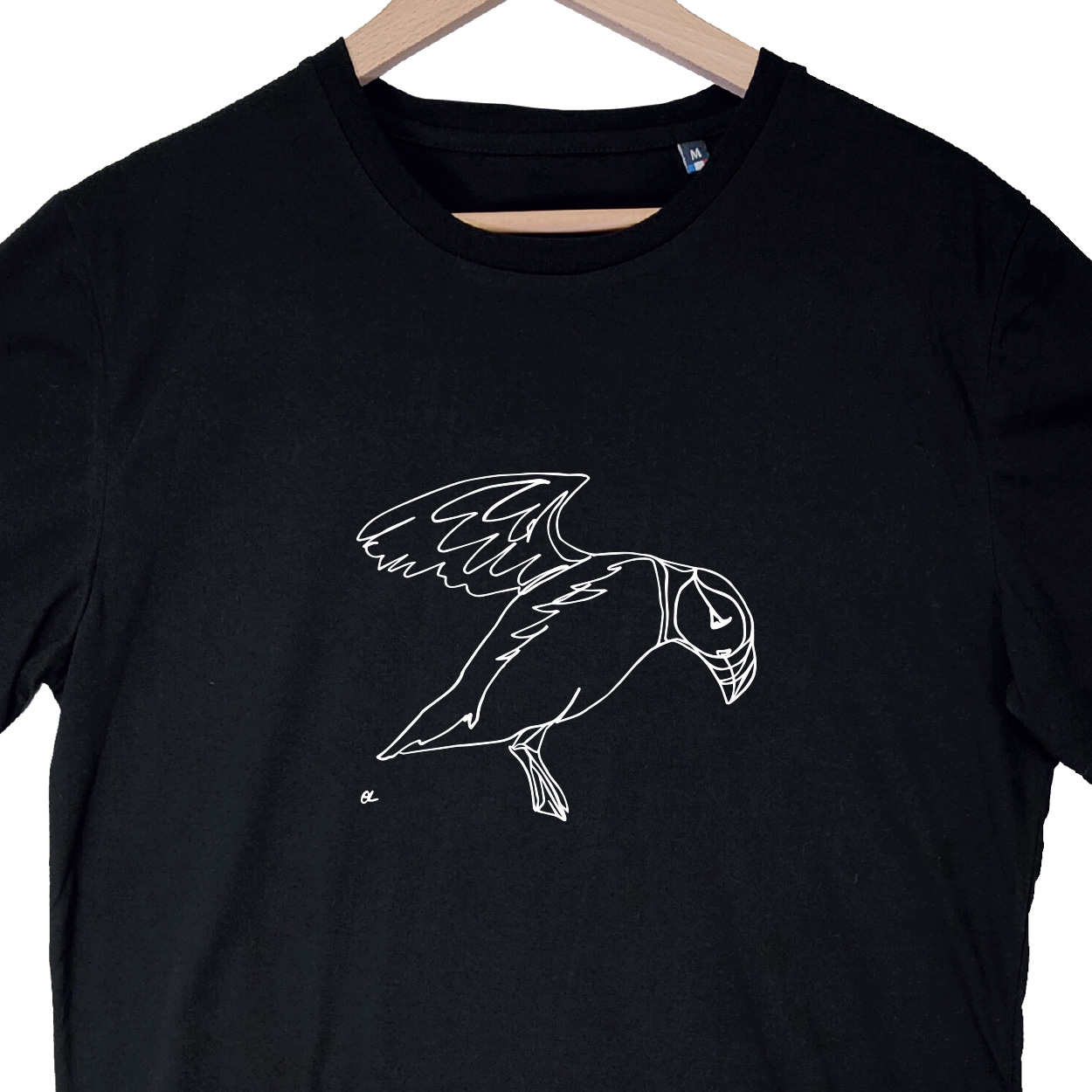 Le tee-shirt LPO noir Macareux se distingue par une coupe standard unisexe offrant à la fois confort et style. Son design épuré est rehaussé d'un dessin unique de macareux moine, réalisé par l'artiste Olivia Lockhart. Placé au centre du vêtement, ce transfert évoque la liberté, la nature sauvage et la fragilité de notre écosystème, ce qui en fait une pièce phare de cette collection exclusive pour la LPO.