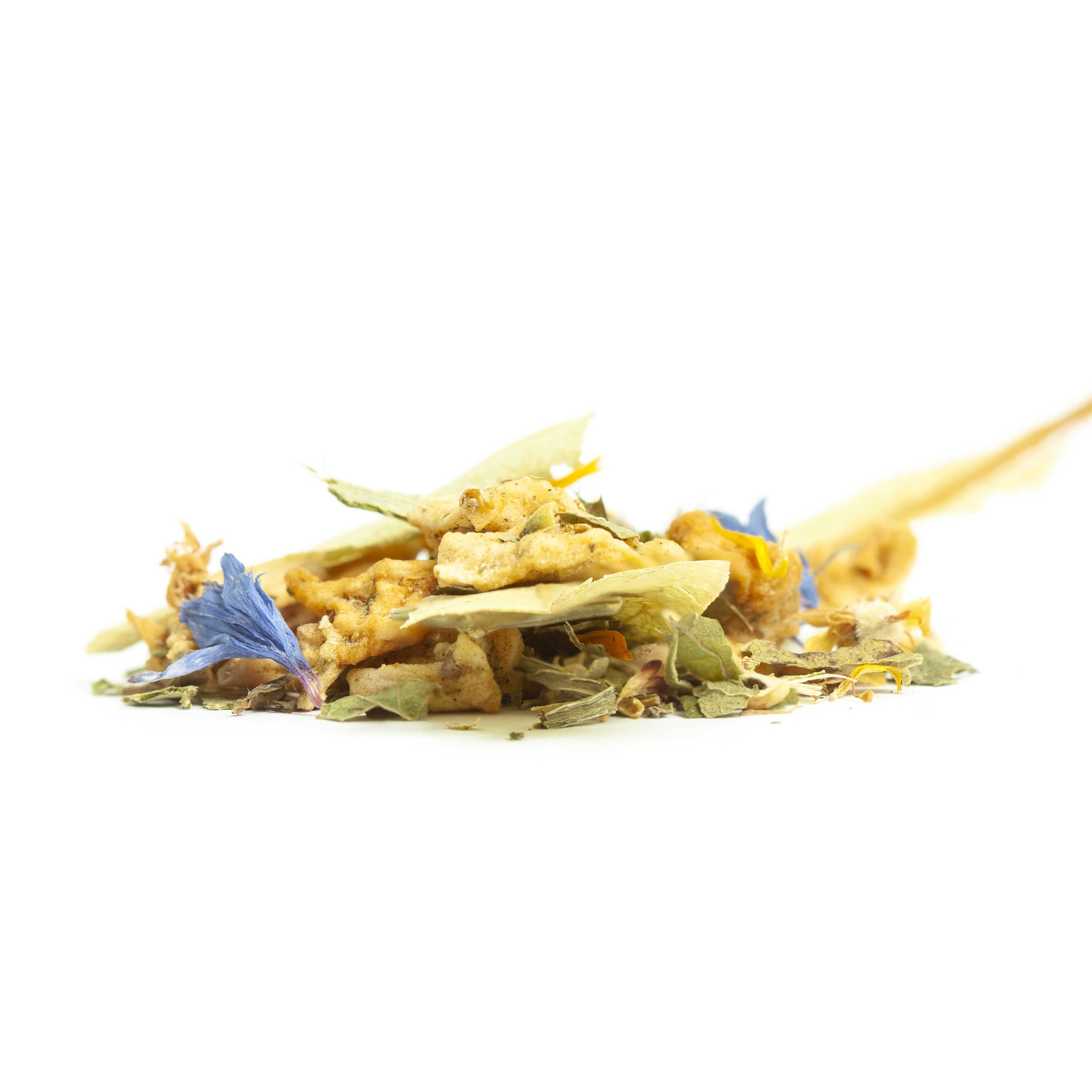 - Composition : Tilleul, Eucalyptus, Mélisse, Reine des prés, Clou de girofle, Pomme, Bleuet, Souci, Myrte