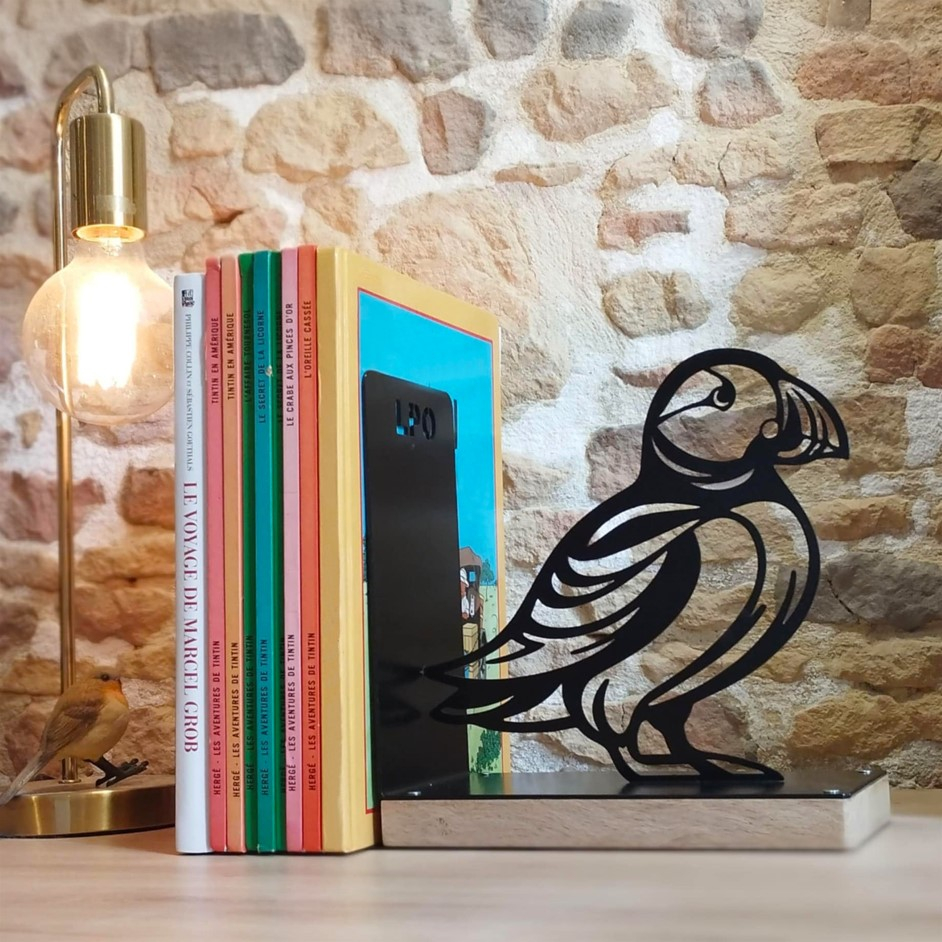 (Ref. EC1476)Un beau serre-livre Macareux en acier, fabriqué par un artisan français engagé dans une démarche locale et écoresponsable.