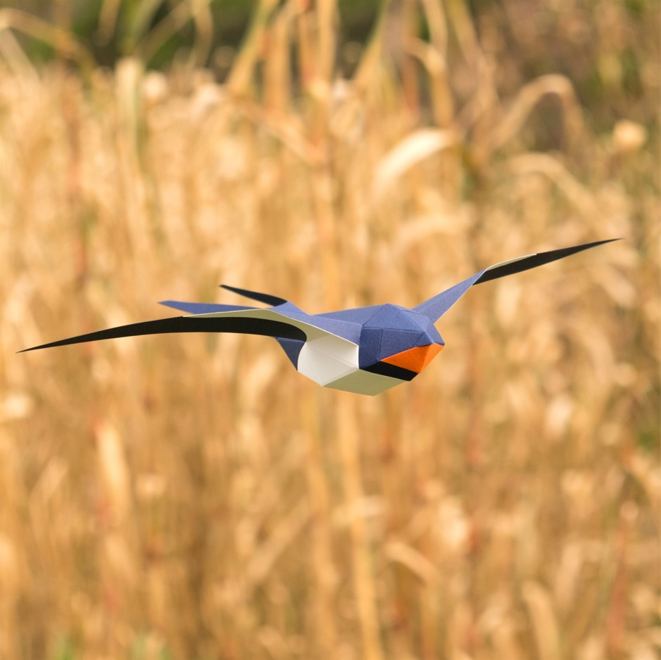 Le kit permet de créer une figurine d'oiseau élégante à suspendre au plafond. Formant un mobile poétique, cet origami Hirondelle viendra embellir votre séjour, bureau ou chambre avec une touche de nature et de fantaisie.