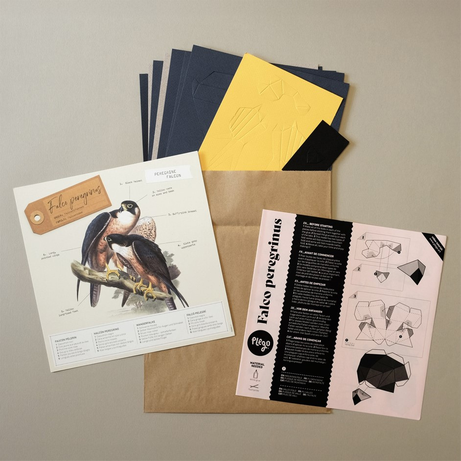 - 10 planches avec pièces prédécoupées - une fiche avec les caractéristiques du Faucon pèlerin - une feuille avec des instructions claires |