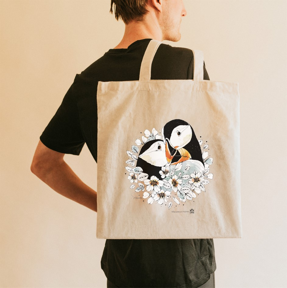 Face à l'abondance de sacs en tissu produits à l'étranger et distribués à bas coût, le tote Bag LPO Duo Macareux moines se distingue par une fabrication à la fois responsable, locale et solidaire.