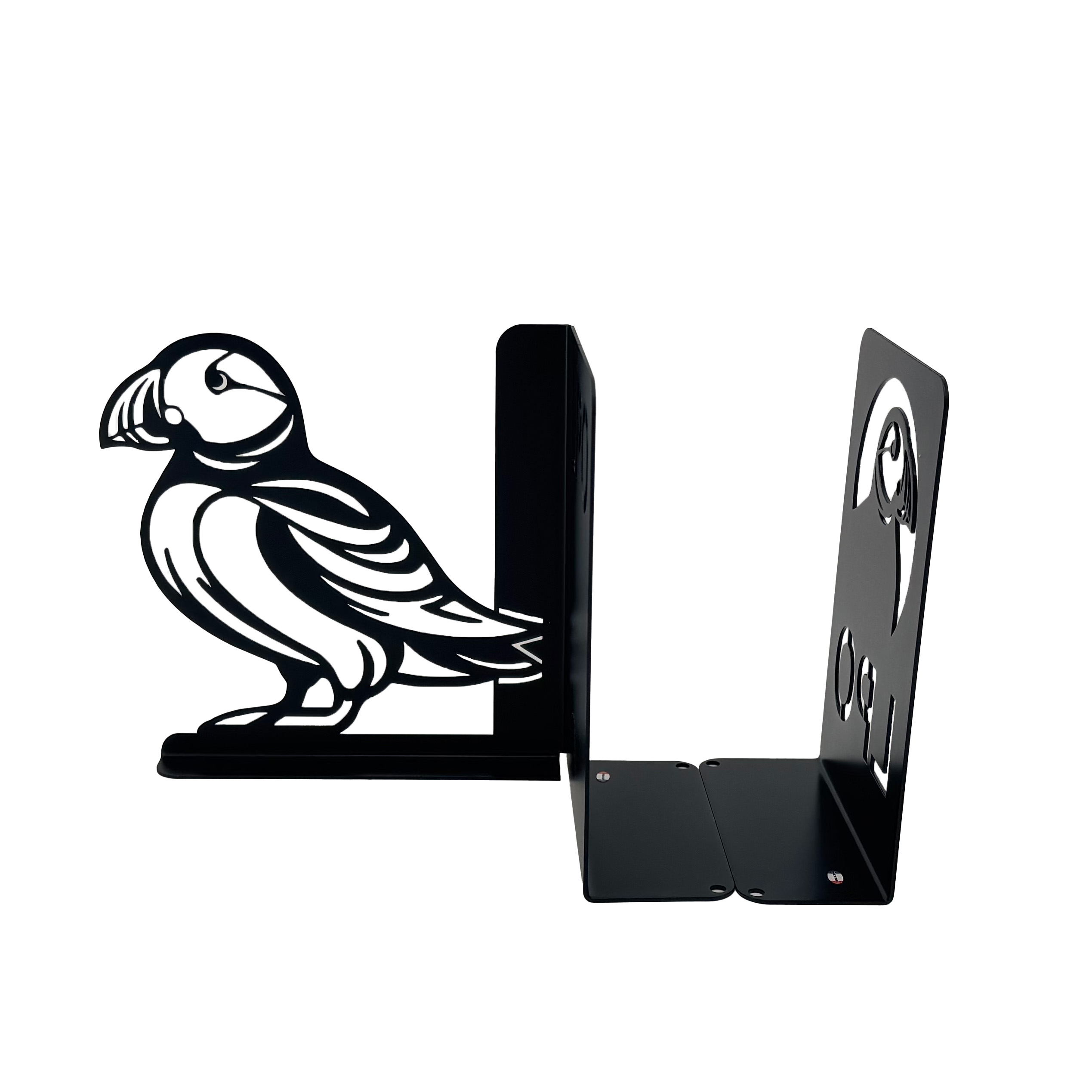 (Ref. EC1537)Un élégant duo serre-livres Macareux en acier, fabriqué par un artisan français engagé dans une démarche locale et écoresponsable.