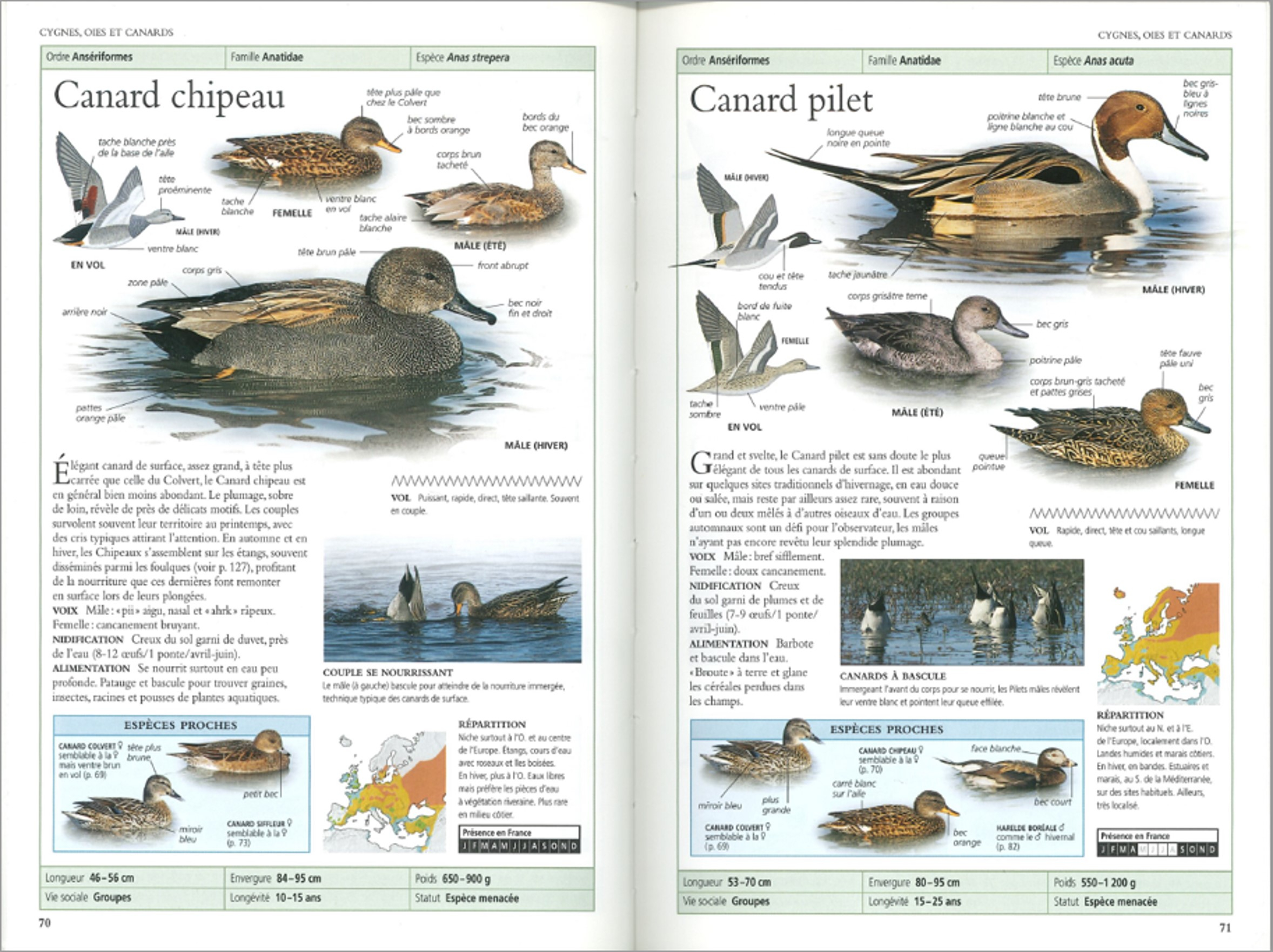 - des photographies pour bien distinguer juvéniles et adultes, mâles et femelles, plumage d’été et plumage d’hiver,
