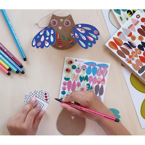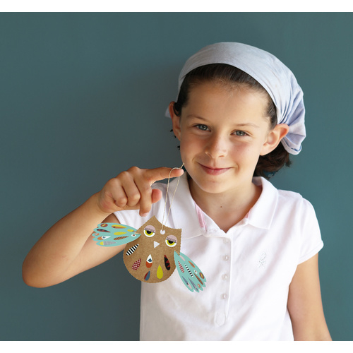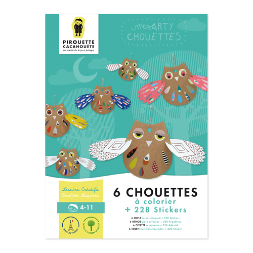 Une activité créative, sans colle ni ciseaux, idéale pour les 4/11 ans. Uniquement du papier et du carton à assembler pour donner vie à ses drôles de chouettes, prêtes à s'envoler. Une multitude de stickers "art" en forme de plumes et d'yeux à coller pour s'amuser à les décorer.