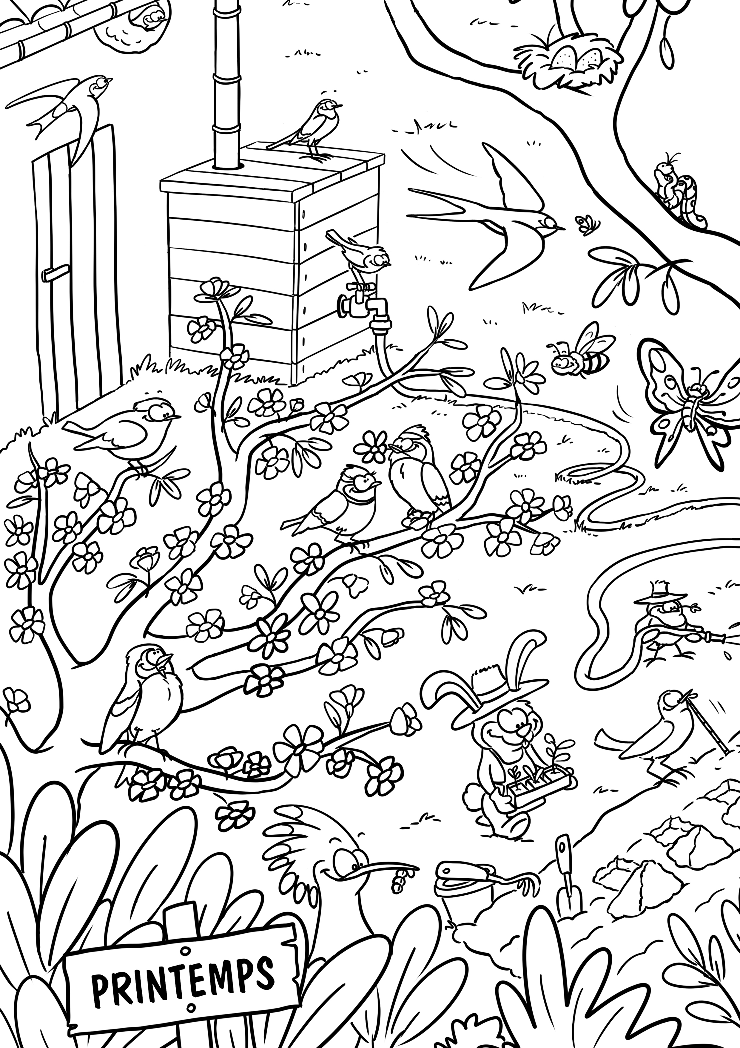 Que se passe-t-il en été, qui voit-on en hiver ? Tu trouveras sur la Frise de coloriage LPO "4 saisons au jardin" des astuces dissimulées pour attirer ces petits animaux indispensables et les protéger tout au long de l'année.