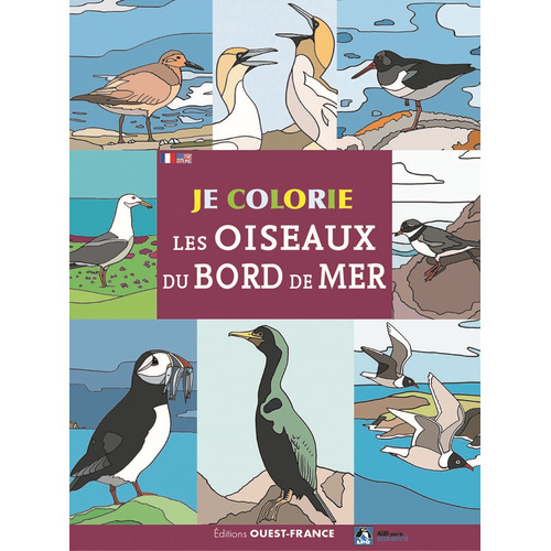 Un livre de coloriage bilingue français-anglais pour découvrir les oiseaux du bord de mer.