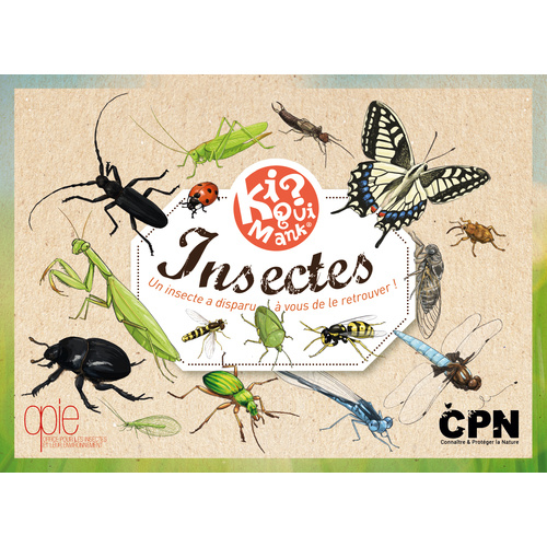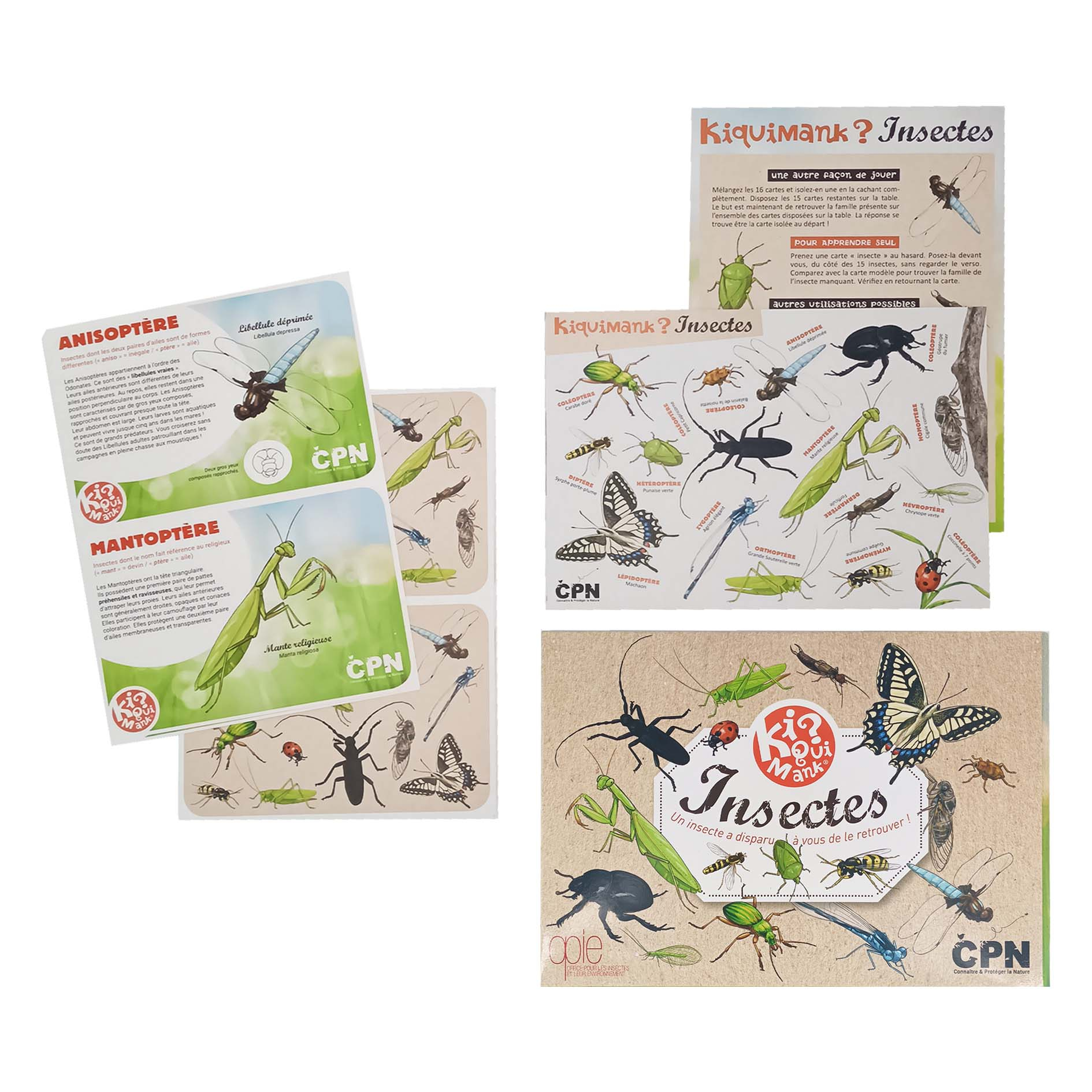Le Kiquimank ? - Insectes est un jeu éducatif, d’observation et de rapidité. Il permet à tous, petits comme grands, de s’exercer à reconnaître 16 familles d'insectes telles que les Anisoptères, les Zygoptères, les Diptères ou encore les Hyménoptères.