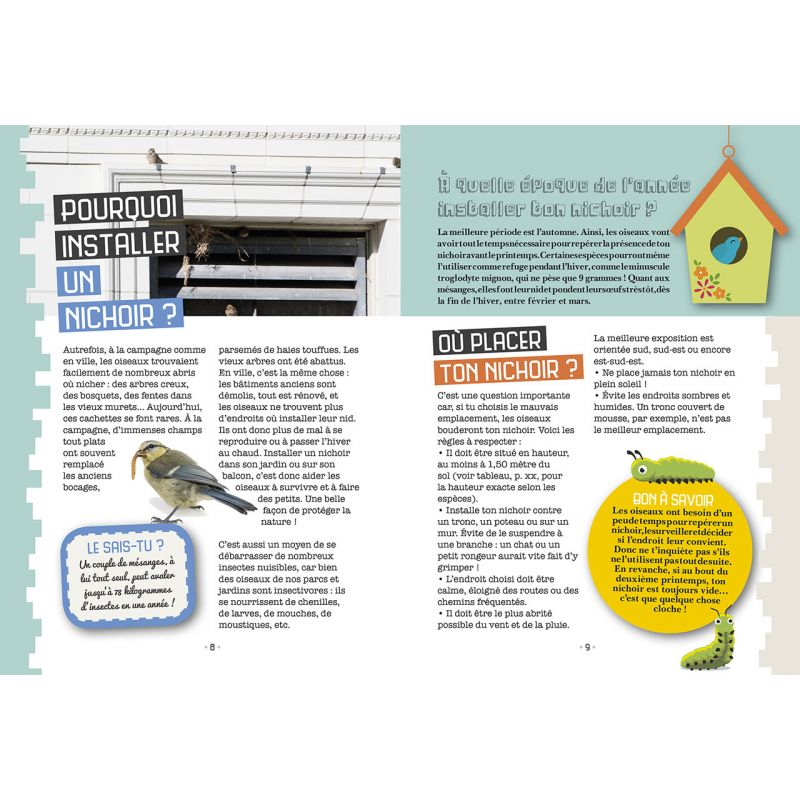 Si tu souhaites attirer les oiseaux dans ton jardin ou sur ton balcon, ce petit guide pratique et documentaire est fait pour toi. A l'intérieur, découvre 6 pas à pas illustrés pour fabriquer 1 mangeoire et 5 modèles différents de nichoirs, avec toutes les astuces pour être sûr que les oiseaux s'y sentent bien.