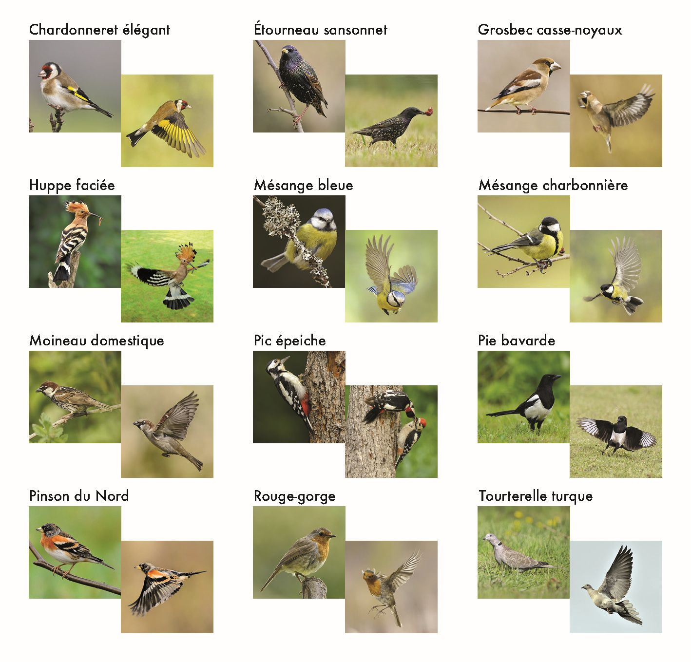 - 1 fiche récapitulative des 12 oiseaux (image et nom)