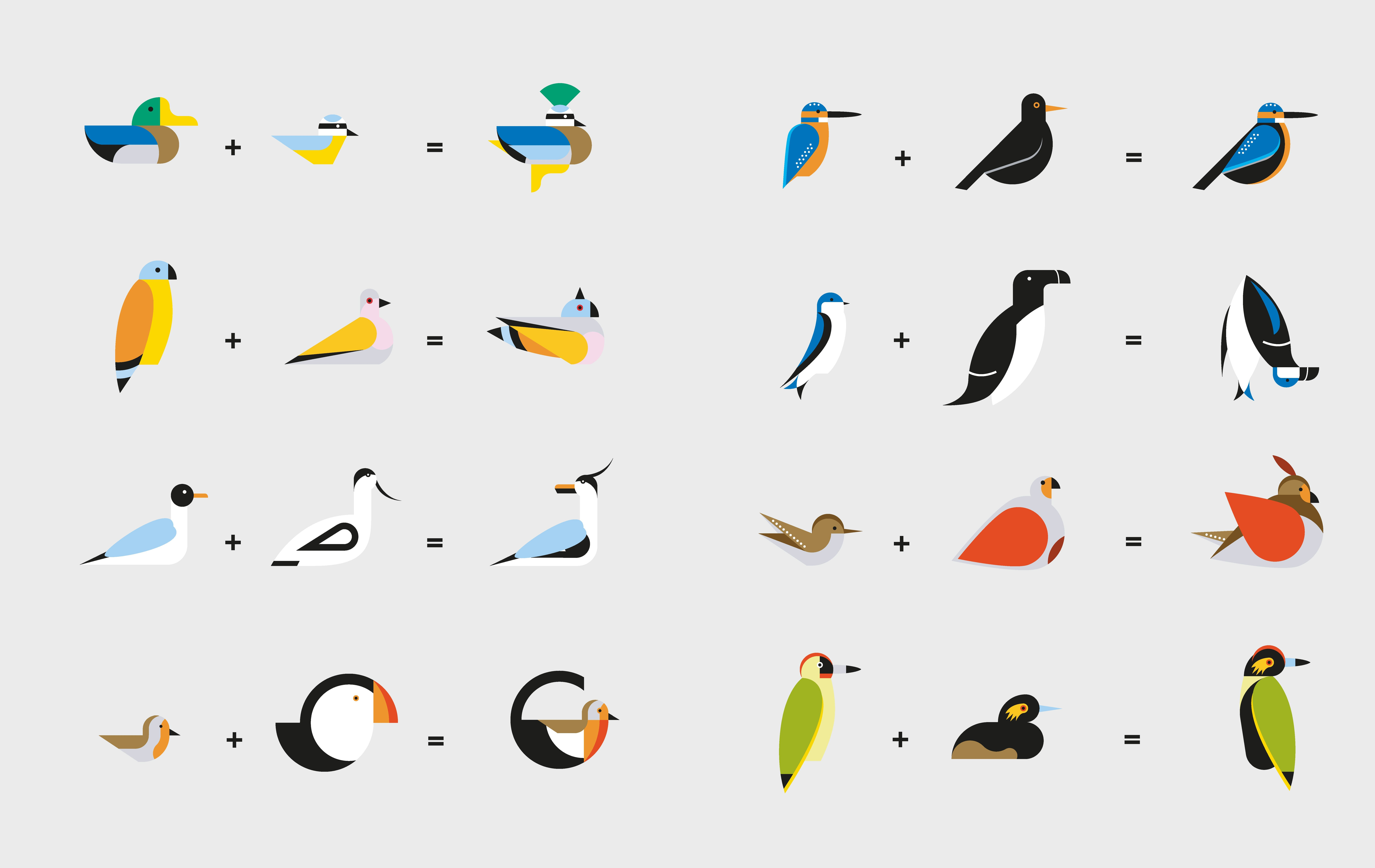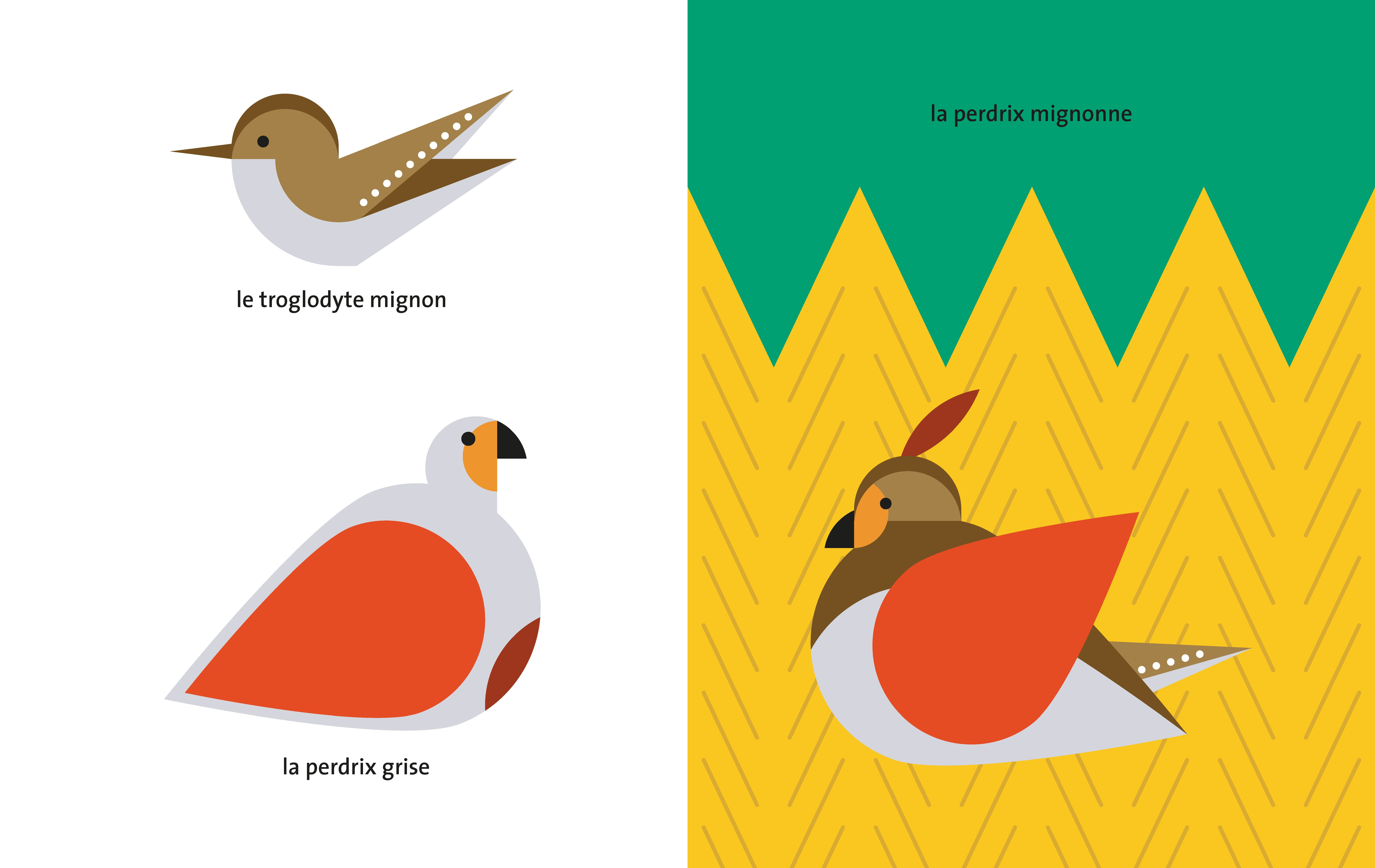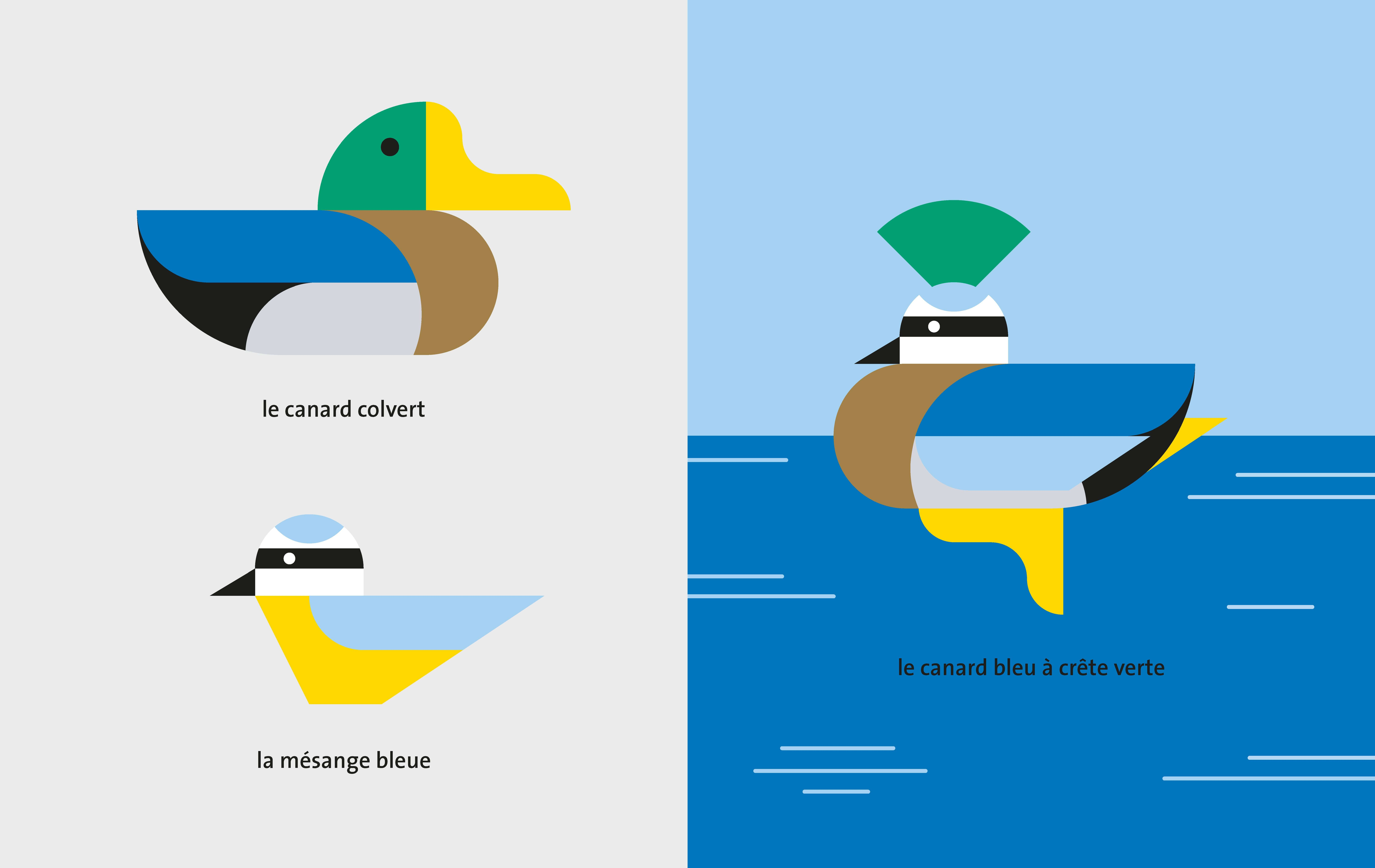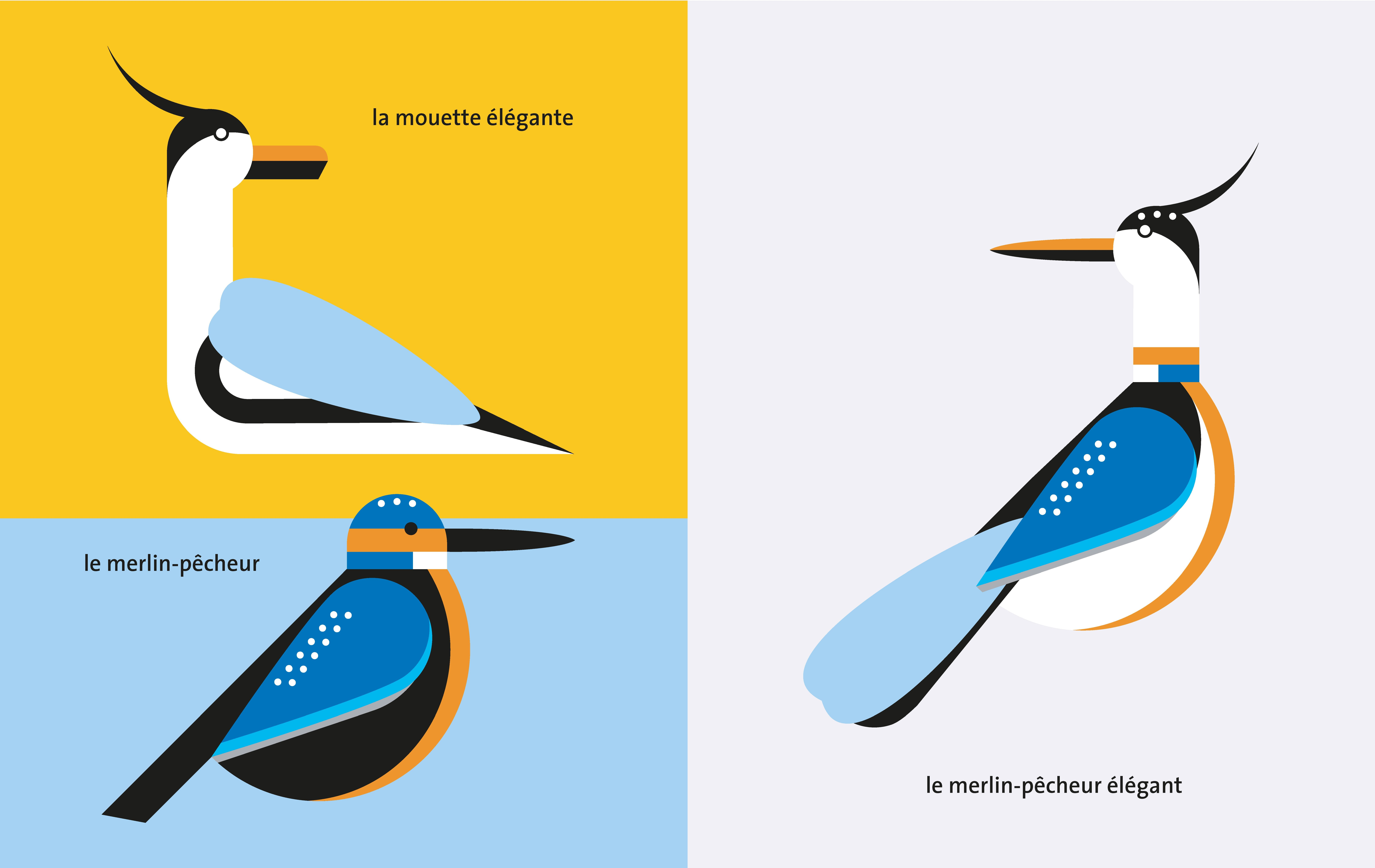 Oiseau + oiseau permet d’aborder les mathématiques, et plus particulièrement les additions, comme un jeu. Le canard colvert + la mésange bleue = le canard bleu à crête verte, la mouette rieuse + l’avocette élégante = la mouette élégante, la poule musicienne + le faucon des bois = le faucoule musicien des bois, le martin-pêcheur + le merle noir = le merlin-pêcheur… et ainsi de suite !