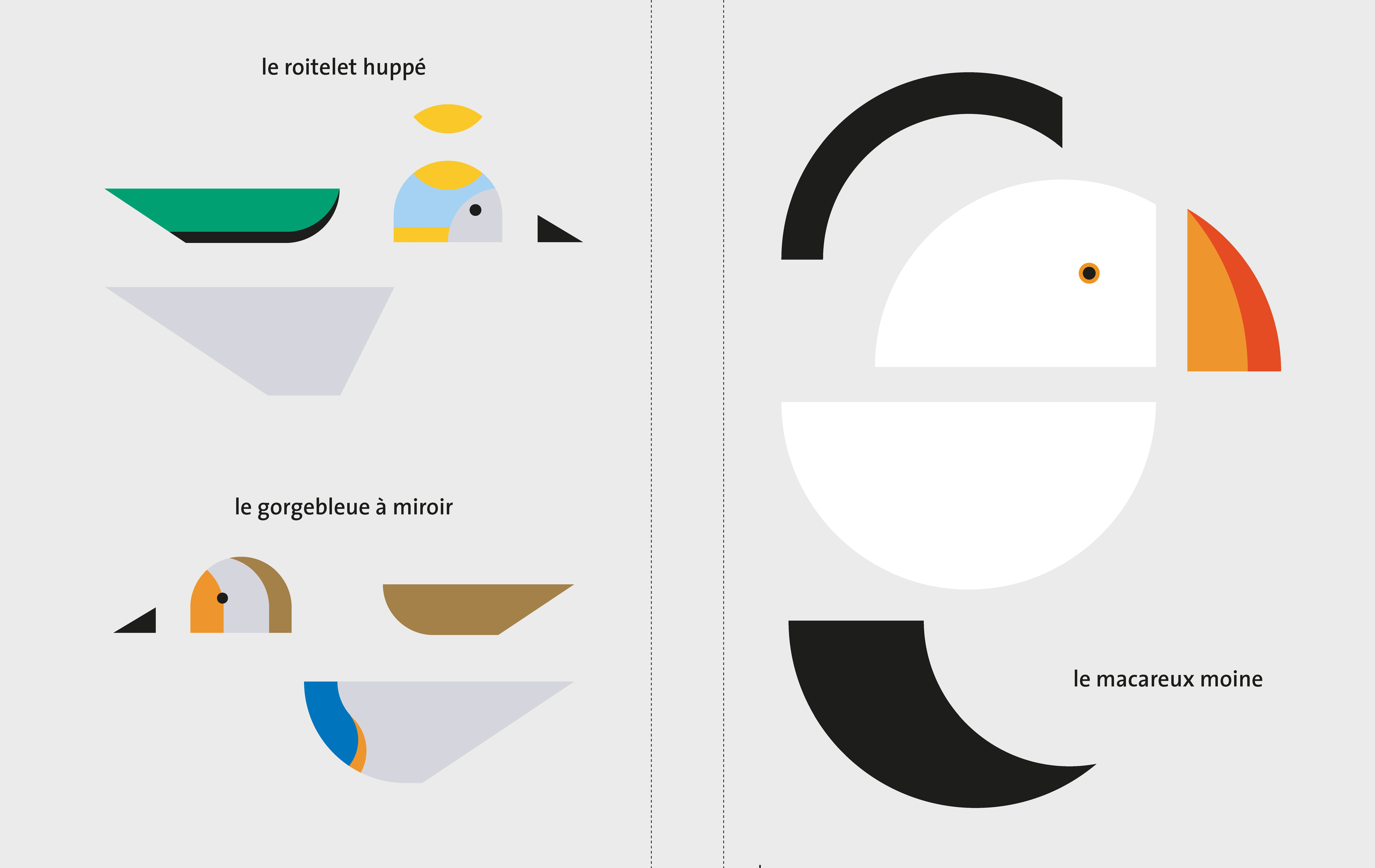 Designer et plasticien, créateur de jouets en bois, Valérian Henry s’est amusé à styliser becs, ailes et autres détails, associés à des couleurs et des motifs pour créer des volatiles graphiques et bigarrés. Composés de formes distinctives, les oiseaux s’additionnent et recomposent d’autres oiseaux aux noms de plus en plus farfelus ! Les associations sont drôles, inventives, pleines de fantaisie et peuvent se décliner à l’infini, en s’inspirant des tables d’addition des oiseaux. Enfin, à la fin du livre, c’est au petit lecteur de jouer : sur des pages détachables selon les pointillés, à lui de découper des formes simples : becs, ailes, gorges et plumes… Il ne reste plus qu’à assembler chaque oiseau puis, à les ajouter pour en former de nouveaux. Sans oublier de donner des noms à ces incroyables volatiles !