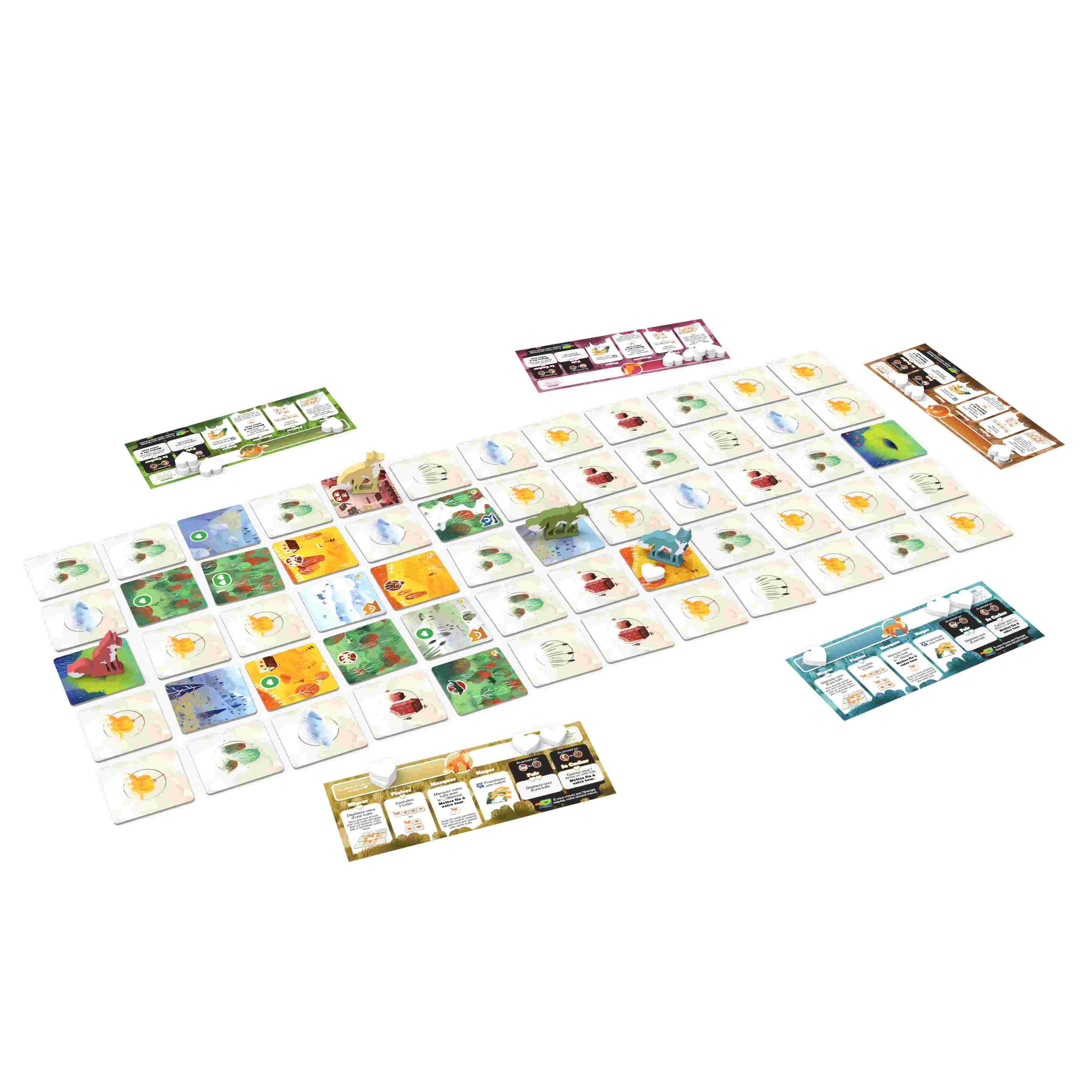 Dans ce jeu palpitant, vous incarnez de jeunes renards qui doivent quitter leur terrier familial à la recherche d'un nouveau territoire. Trouver le meilleur chemin, planifier des haltes judicieuses et garder une longueur d'avance sur vos rivaux seront les clés de la victoire. Les règles simples et accessibles permettent à tous les joueurs de s'immerger facilement dans cet univers captivant.
