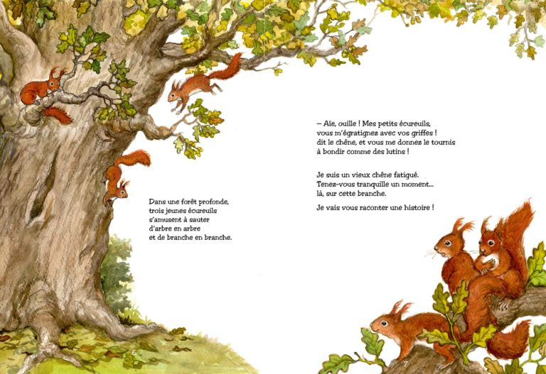 Le livre Au voleur ! illustre l'histoire de Filou l’écureuil, dont les provisions de glands pour l’hiver ont disparu.
