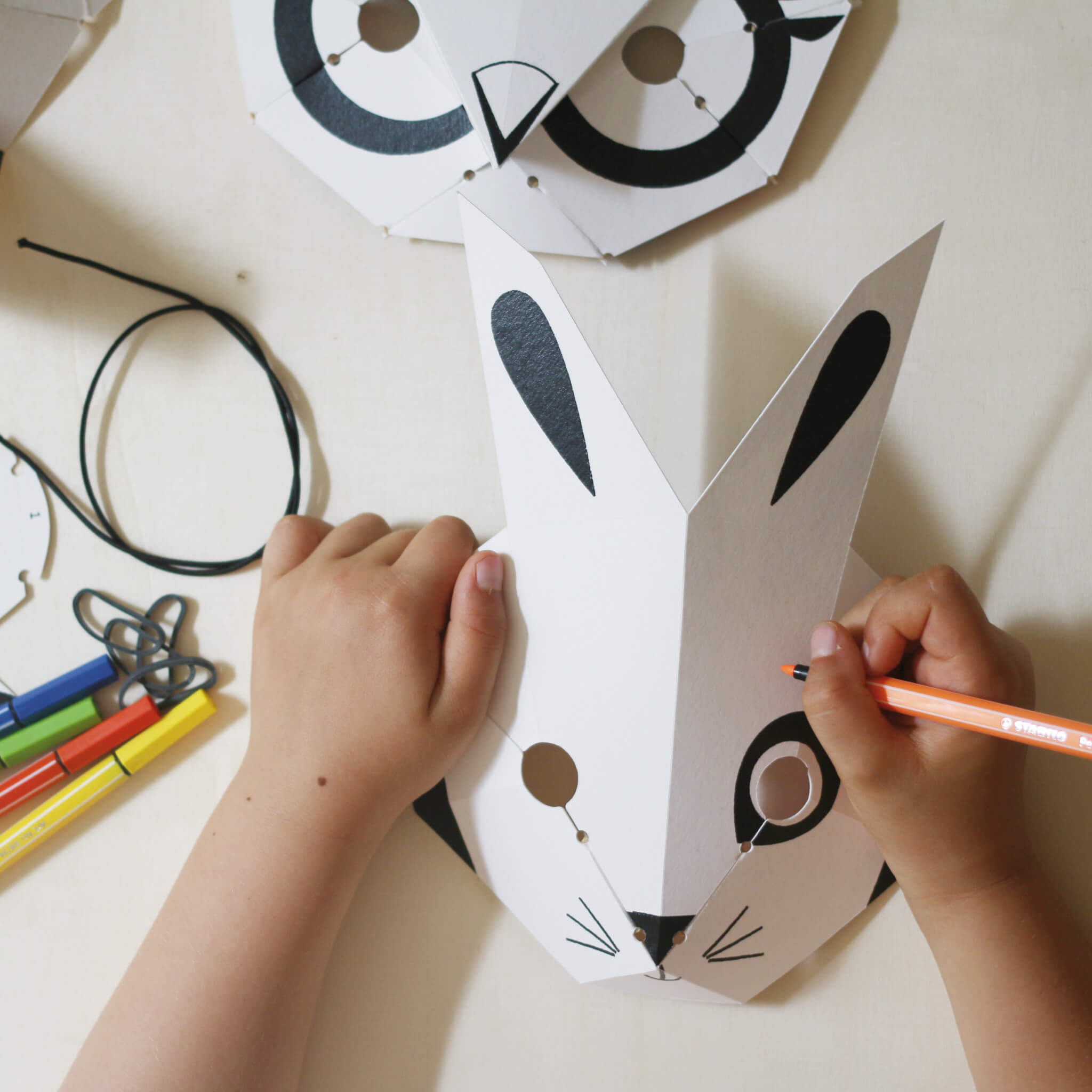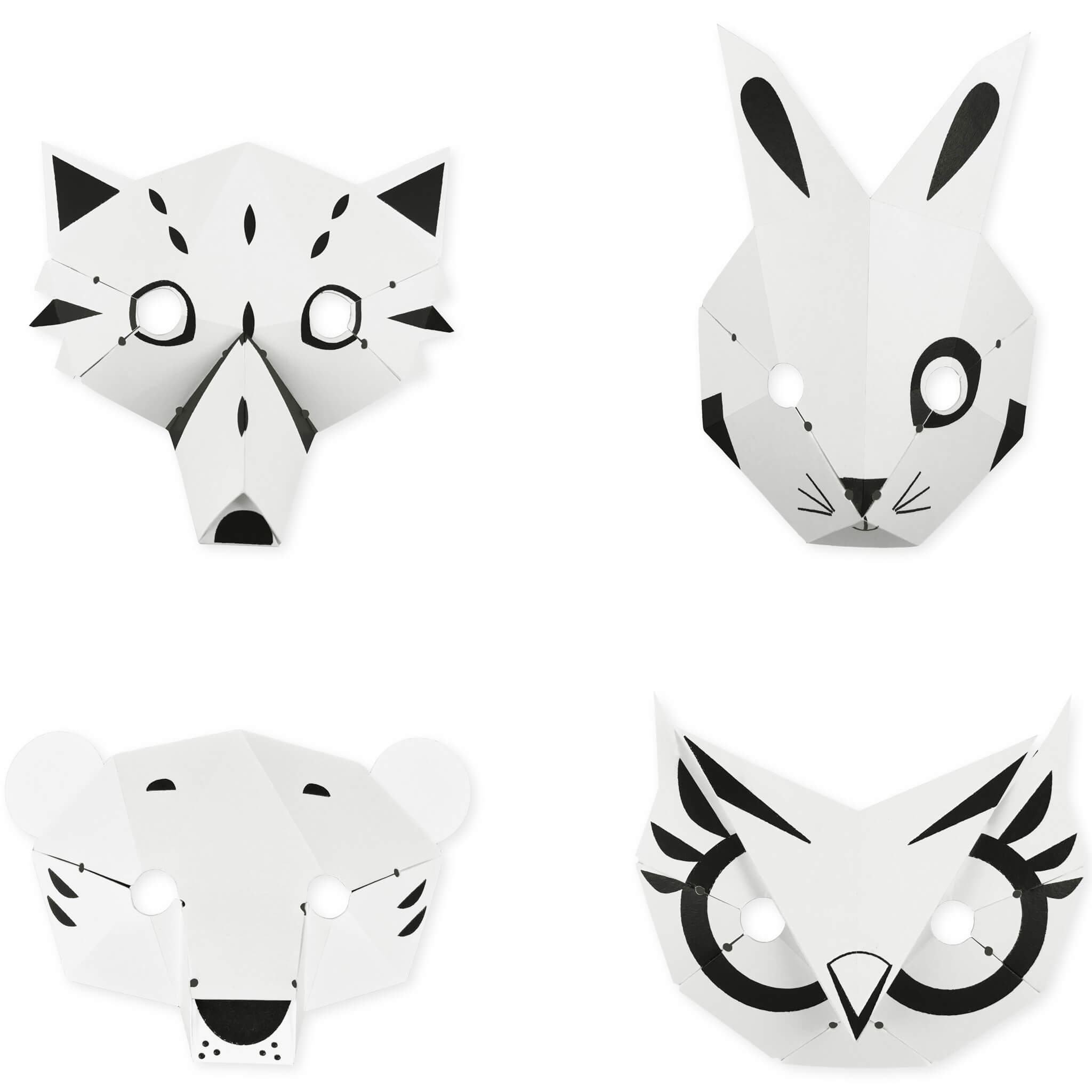 Chaque masque est conçu pour être assemblé en 3D, offrant ainsi une dimension supplémentaire au plaisir de la création. Les enfants peuvent personnaliser leurs masques en les coloriant selon leur propre imagination, ce qui stimule leur créativité et leur permet de développer leur sens artistique.