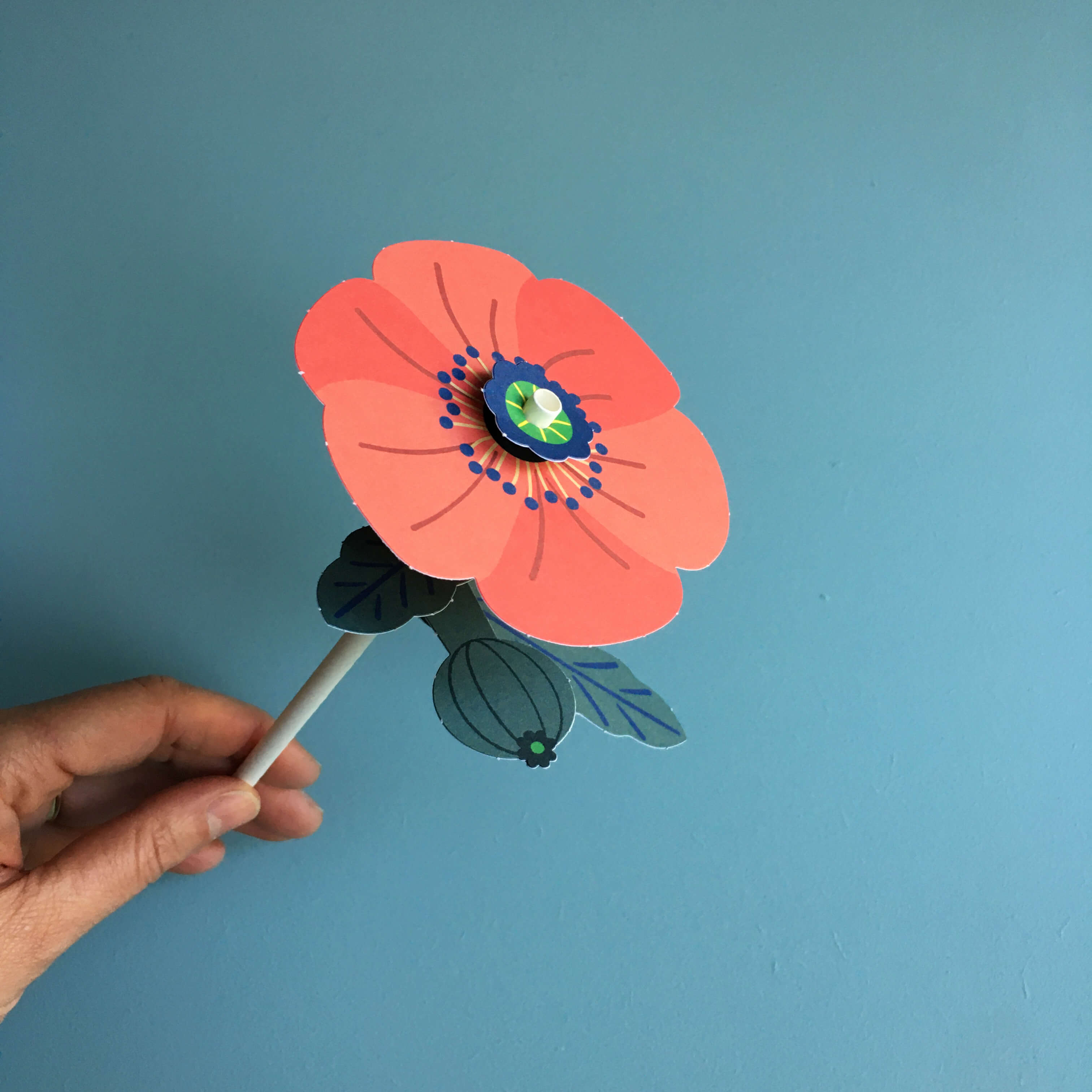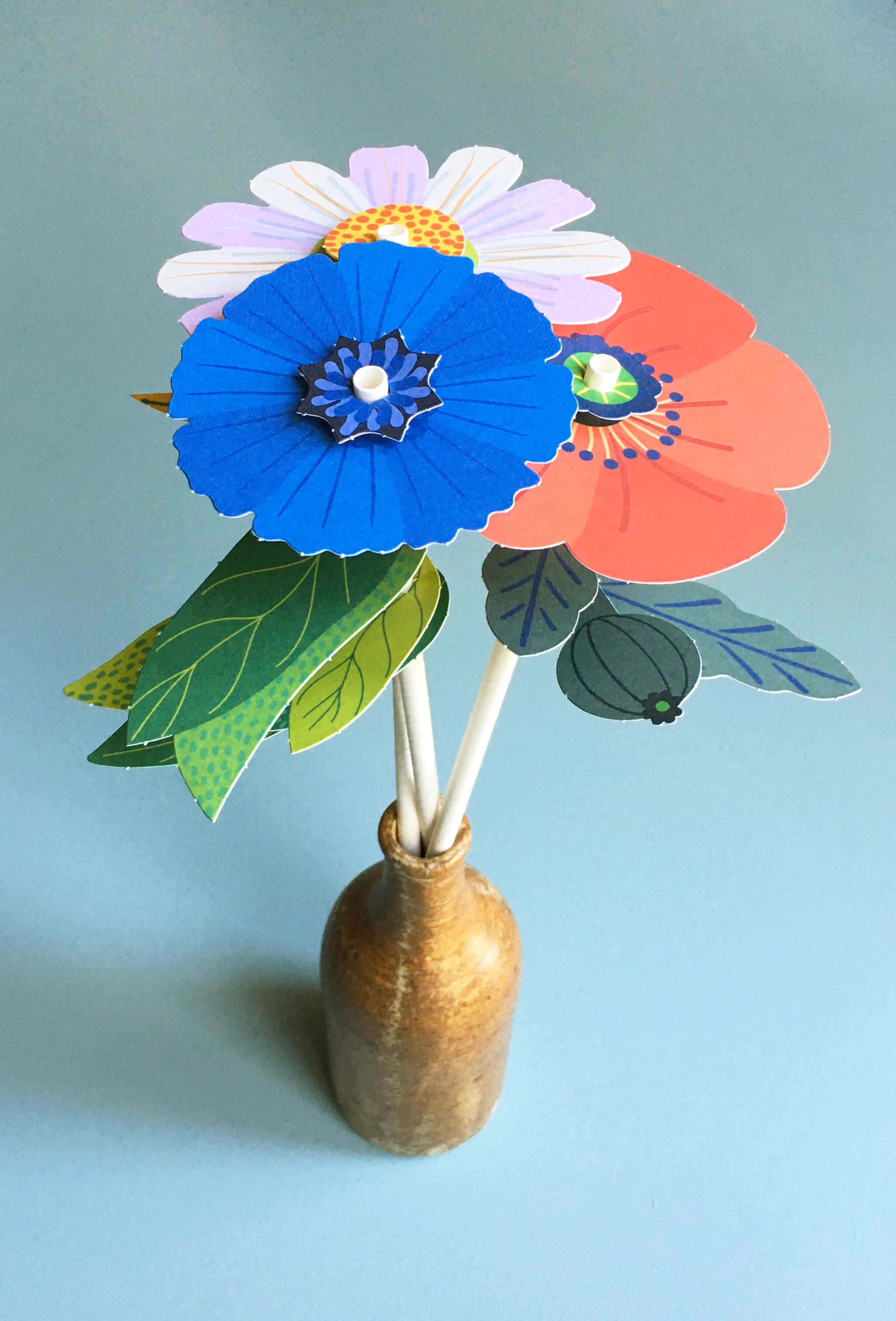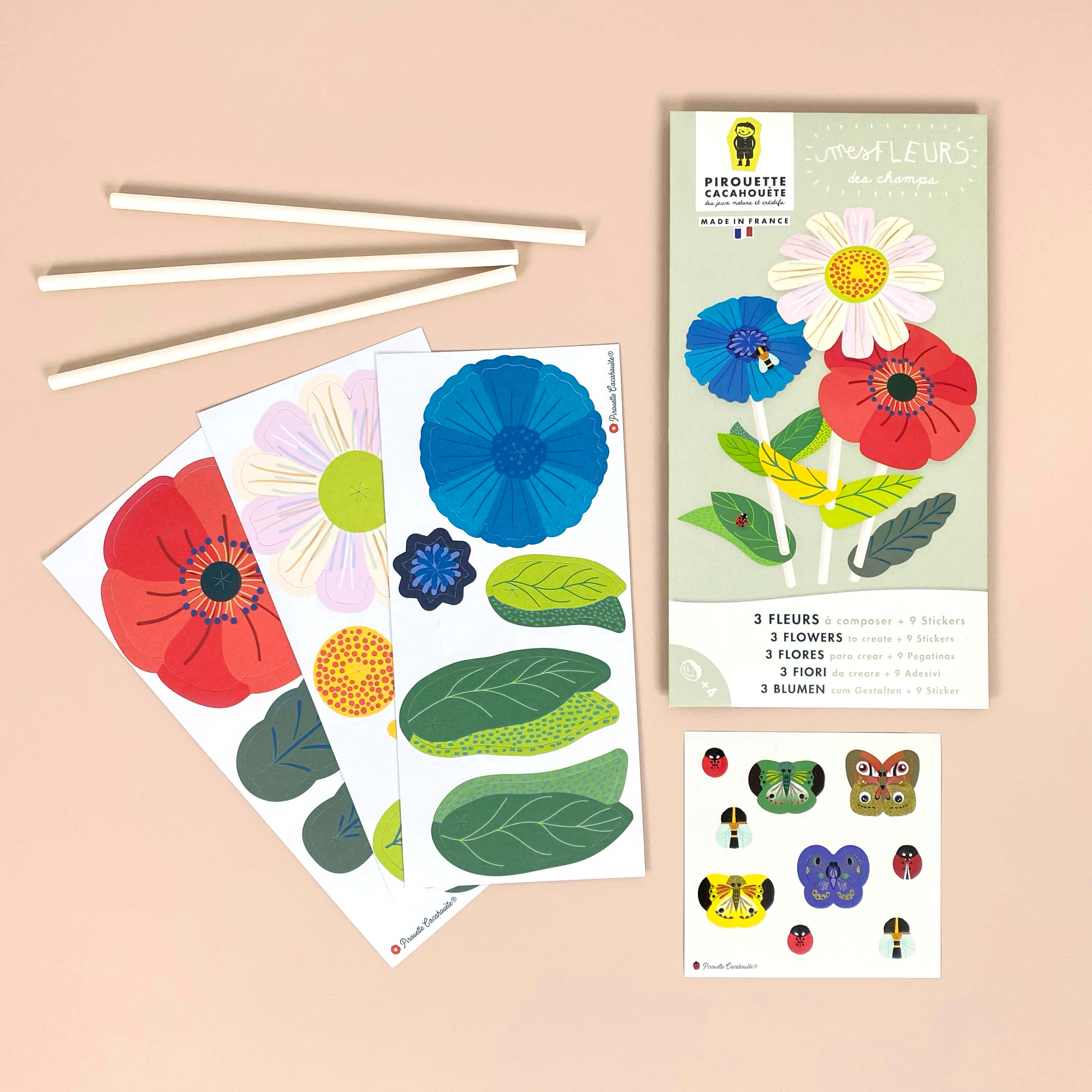 Une activité créative pour réaliser un bouquet de fleurs en papier cartonné, avec des stickers d'insectes à coller.