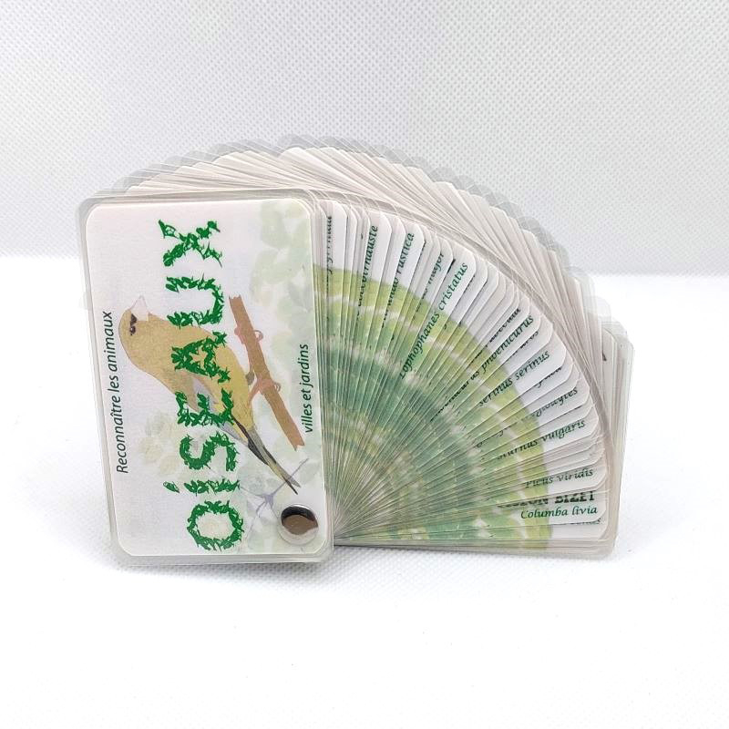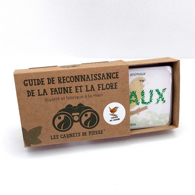 Le Guide de reconnaissance de la faune et de la flore - Les oiseaux des jardins est un outil indispensable pour tous les passionnés de nature. Illustré et fabriqué à la main, ce carnet d'exploration plastifié se distingue par son format compact, équivalent à une carte de visite, ce qui lui permet de se glisser aisément dans toutes les poches. Conçu pour être résistant à l'eau et aux salissures, il est idéal pour toutes vos balades en plein air, garantissant durabilité et praticité.