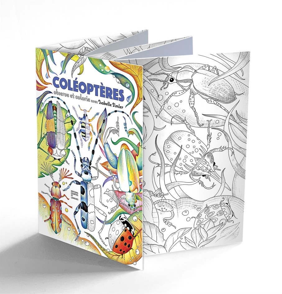 Conçu par Isabelle Simler, cet album de coloriage pour enfants propose, au recto, des dessins naturalistes de coléoptères, à colorier librement selon l'inspiration de chacun. Le verso, à visée documentaire, identifie et référence précisément les noms, formes et couleurs de chaque insecte représenté. Cette approche permet de relier la création libre à une connaissance fine de ce microcosme fascinant.