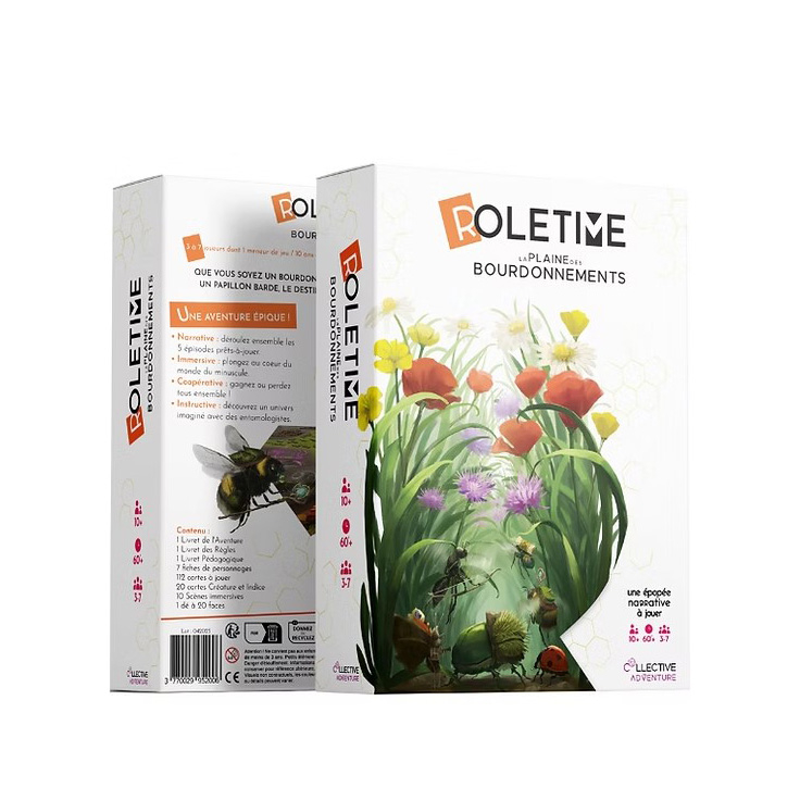Role Time, La plaine des bourdonnements est un jeu narratif et coopératif pensé comme une initiation aux jeux de rôle pour les plus jeunes, tout en séduisant les joueurs expérimentés en quête d’univers originaux. Cette boîte combine habilement les mécanismes d’un jeu de plateau et la liberté d’un jeu de rôle, offrant une expérience immersive et collaborative qui met en avant les enjeux écologiques.