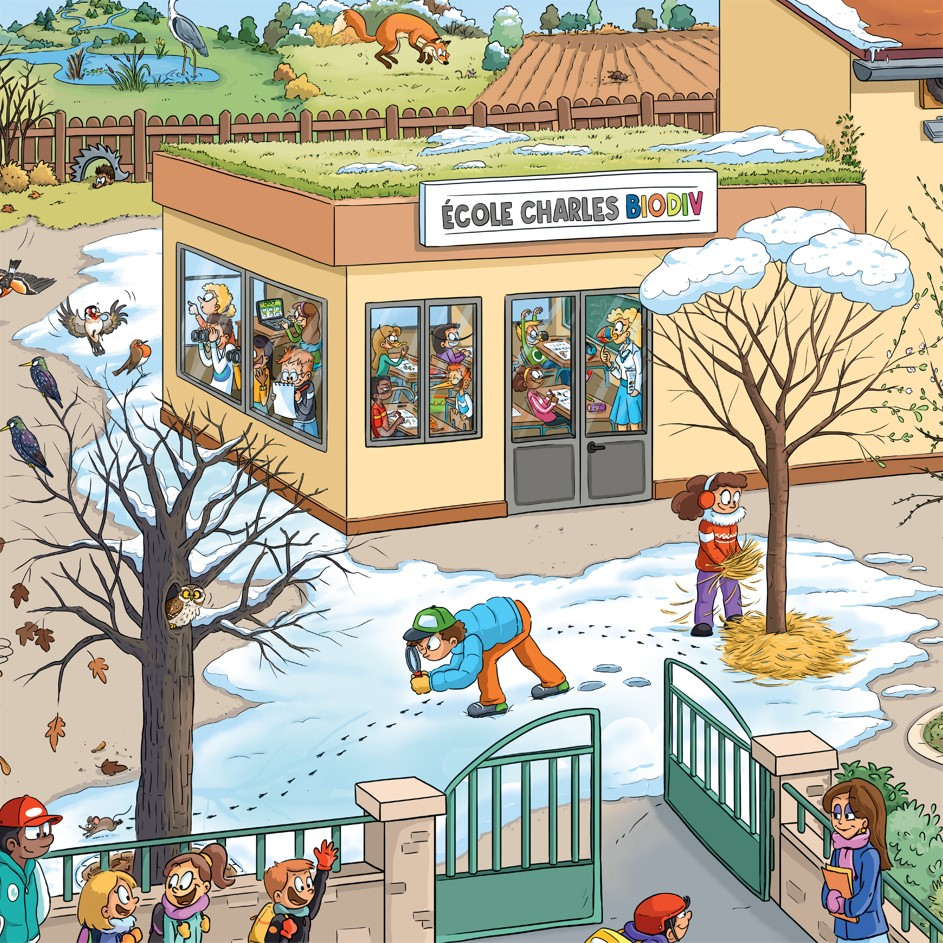 Ce poster grand format illustre pour les enfants le rythme des saisons en mettant en lumière les événements naturels, les espèces et les gestes écocitoyens à suivre durant l’année. Grâce à sa simplicité et à son format clair, cette frise permet aux élèves et aux animateurs de suivre l’évolution de la nature au fil des jours et de relier chaque observation aux cycles saisonniers.