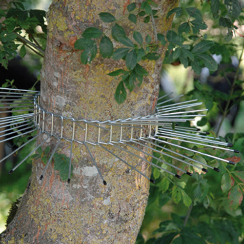 Barrière de protection anti-prédateurs constituée de maillons indépendants. Destiné à empêcher les chats et autres prédateurs des oiseaux de grimper pour accéder aux nichoirs ou aux mangeoires. Circonférence maximum d'un stop minou : 70 cm. Il est possible de lier plusieurs Stop minou ensemble pour les arbres dont la circonférence du tronc excède 70 cm. Veillez à une hauteur de sécurité minimale (à 2,5 mètres du sol) pour éviter tout risque de blessure.