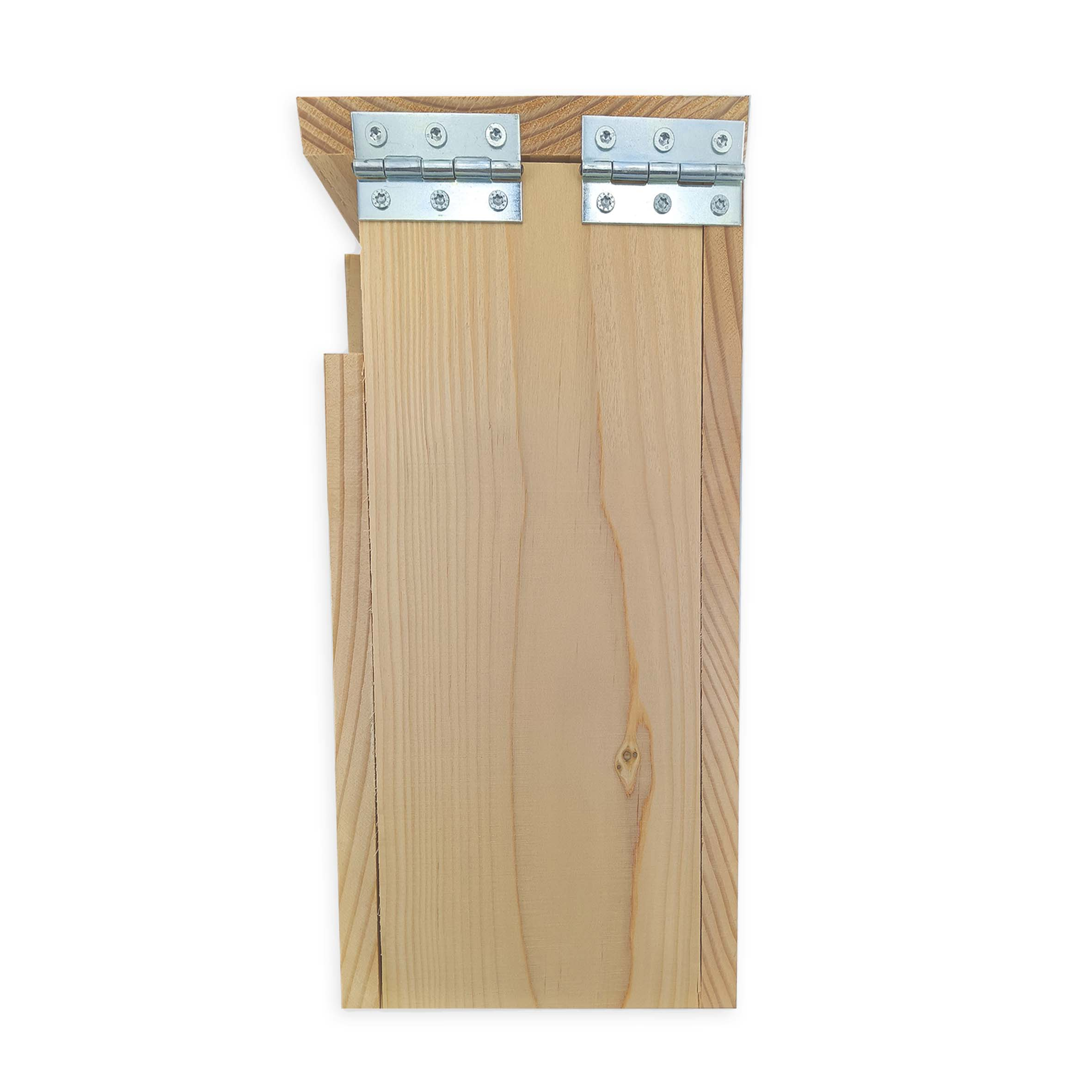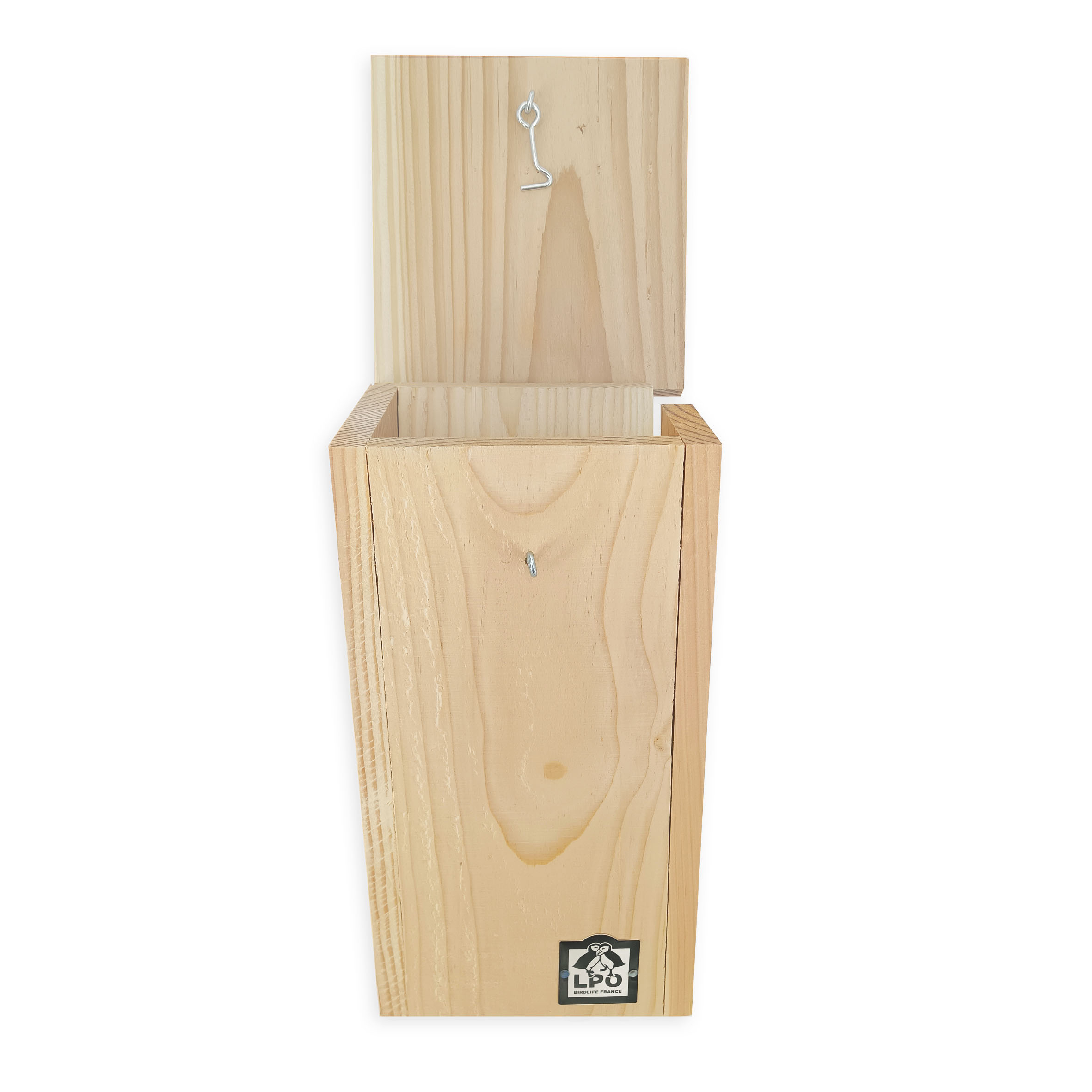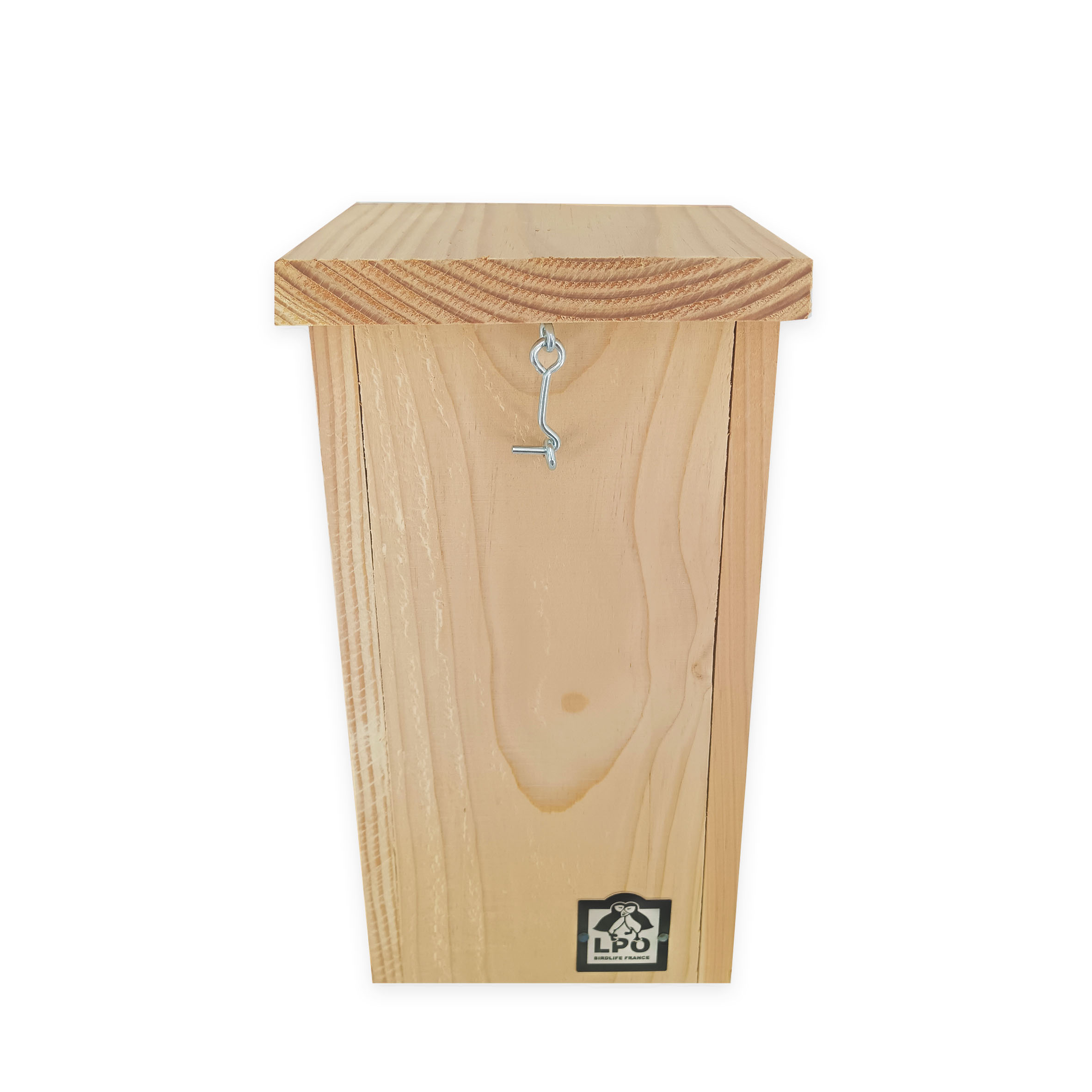 Conçu par la LPO et fabriqué en France en ESAT avec du bois Douglas issu de forêts gérées durablement, ce nichoir spécifique avec trou d'envol sur le côté est spécialement adapté au grimpereau des jardins qui, en milieu naturel, construit son nid derrière une grosse écorce à demi détachée.