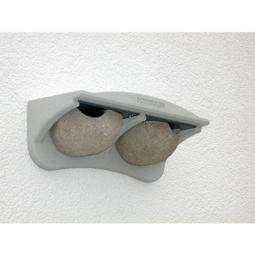 Ce nid double pour hirondelles de fenêtre est conçu pour être installé sous une avancée de toit. Ses dimensions intérieures sont adaptées à l’écologie de l’espèce. Grâce à son design à la fois sobre et soigné, il s’intègre naturellement à tout type de façade de bâtiment. Son installation est très simple et son nettoyage rapide. Pour l’entretien, il suffit de dévisser les deux nids du support.