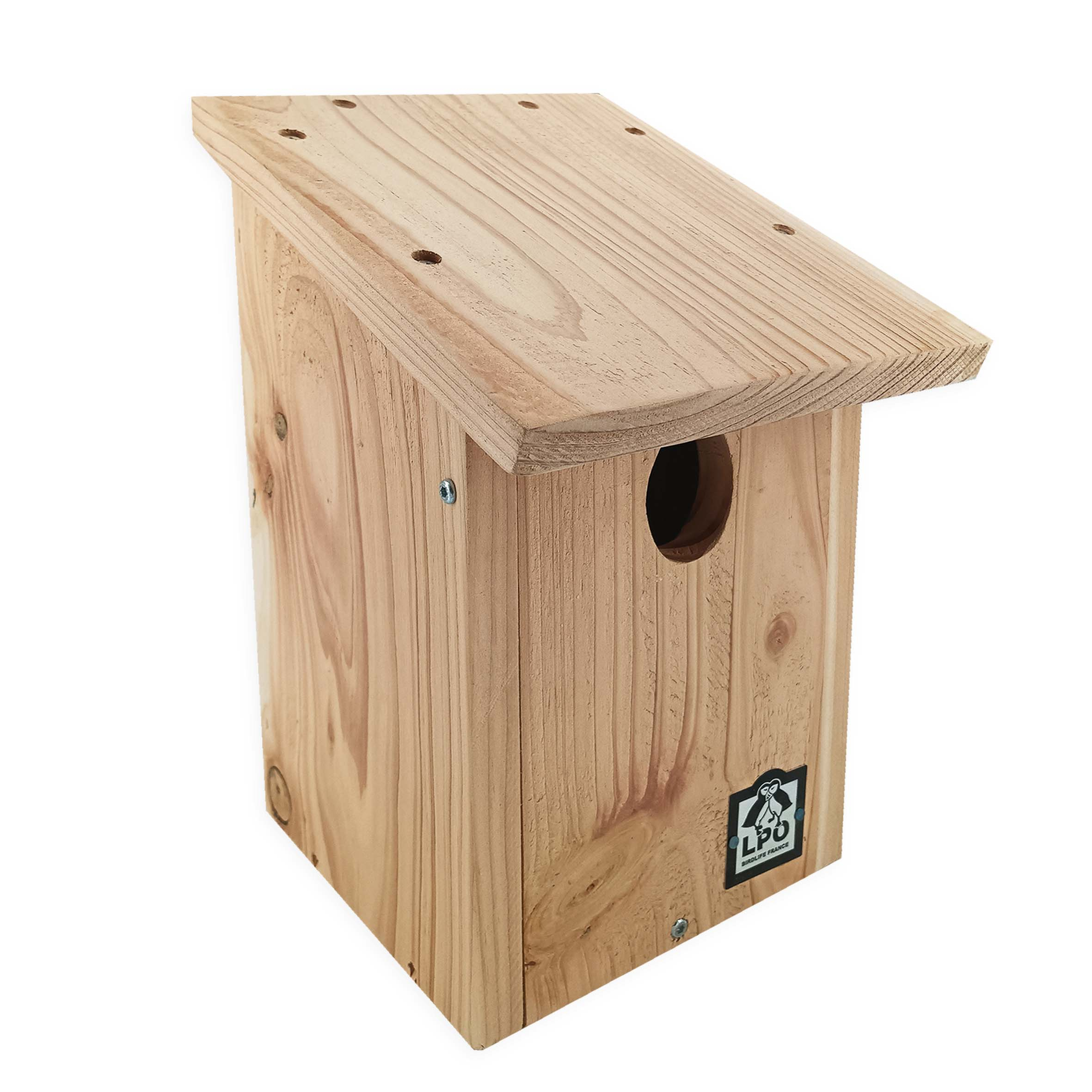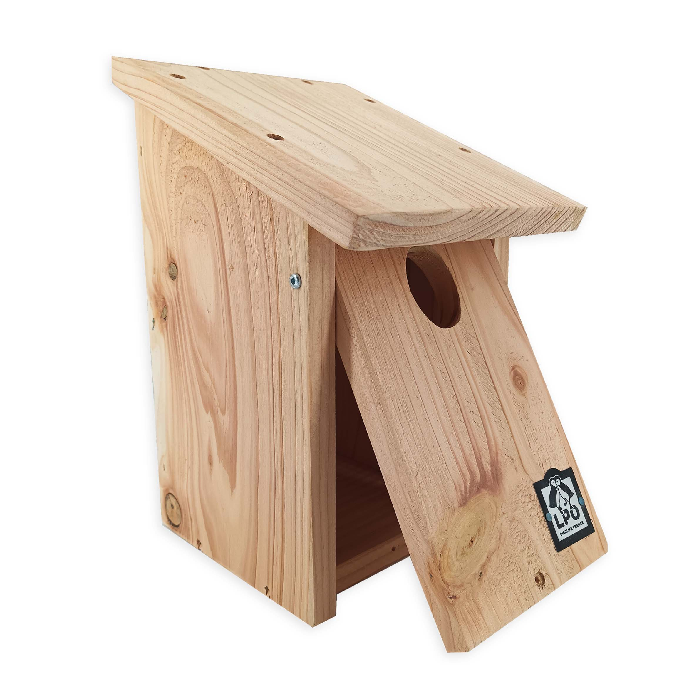 Conçu par la LPO et fabriqué en ESAT, en sapin Douglas naturel issu de forêts gérées durablement, ce nichoir a été spécialement développé afin d'offrir un abri au rougequeue à front blanc durant sa nidification.