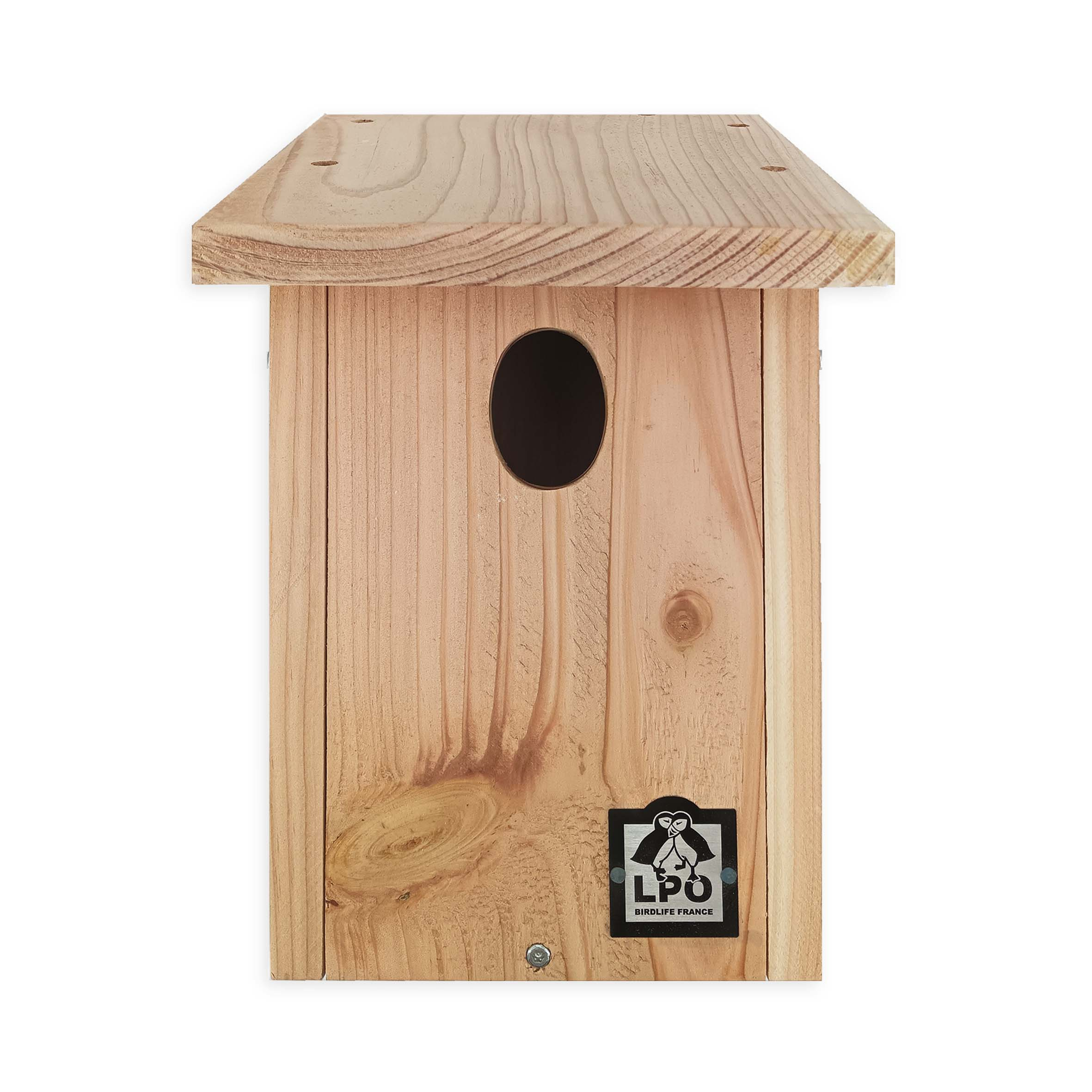 Trou d'envol 46 x 32 mm Matière(s) Bois Dimensions L.17 x l.17 x H.32 cm Poids net 2,1 kg Marque LPO Pays de fabrication France
