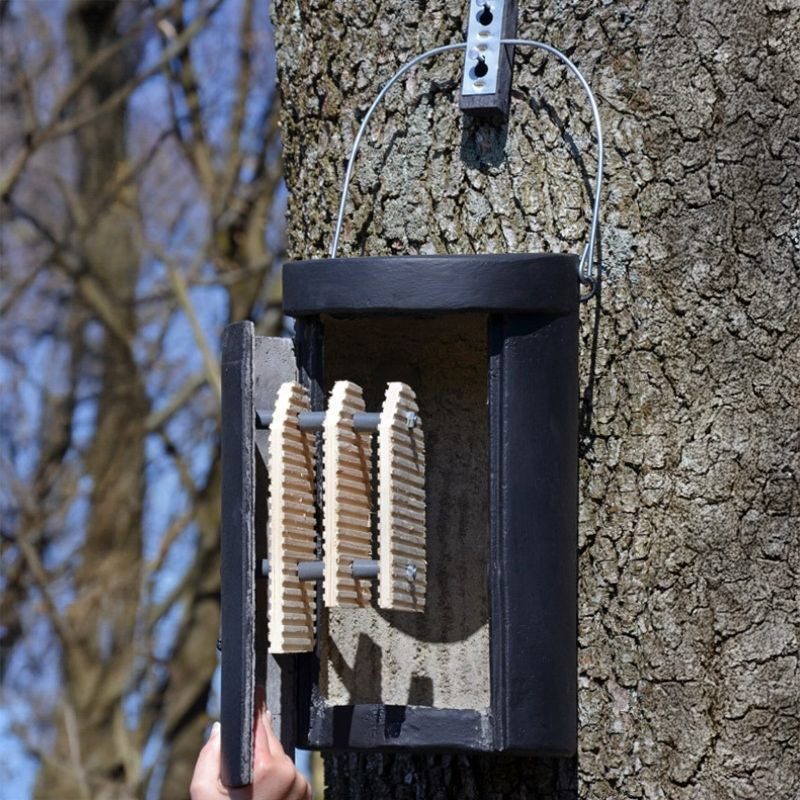 Habituellement, une centaine de jeunes (entre autres les noctules) sont élevés dans ces gîtes. Grâce à sa grande chambre intérieure et ses possibilités de suspension intégrées, ce modèle de gîte abrite un grand nombre de chauves-souris et convient parfaitement pour l'élevage des jeunes.