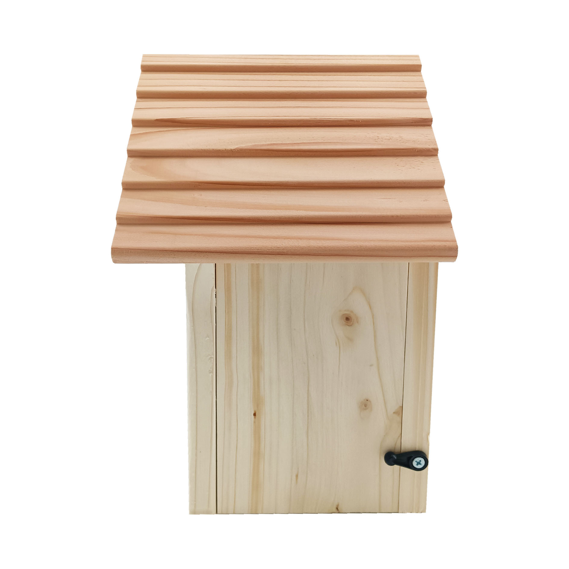 Une fois la saison de la nidification terminée, nettoyez les résidus de nid en ouvrant la trappe pivotante prévue sur le côté du nichoir. Vous pouvez utiliser notre désinfectant biodégradable prêt à l’emploi. Votre nichoir sera alors prêt pour accueillir une nouvelle portée la saison prochaine.