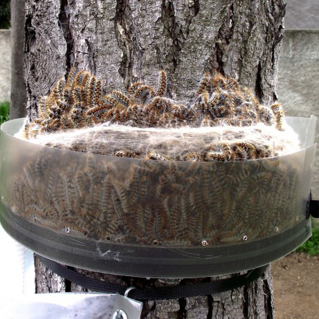 1. Compter le nombre d’arbres atteints : permet de déterminer la quantité de pièges à commander. Seuls les arbres infectés par des cocons blancs purs et soyeux sont à comptabiliser.