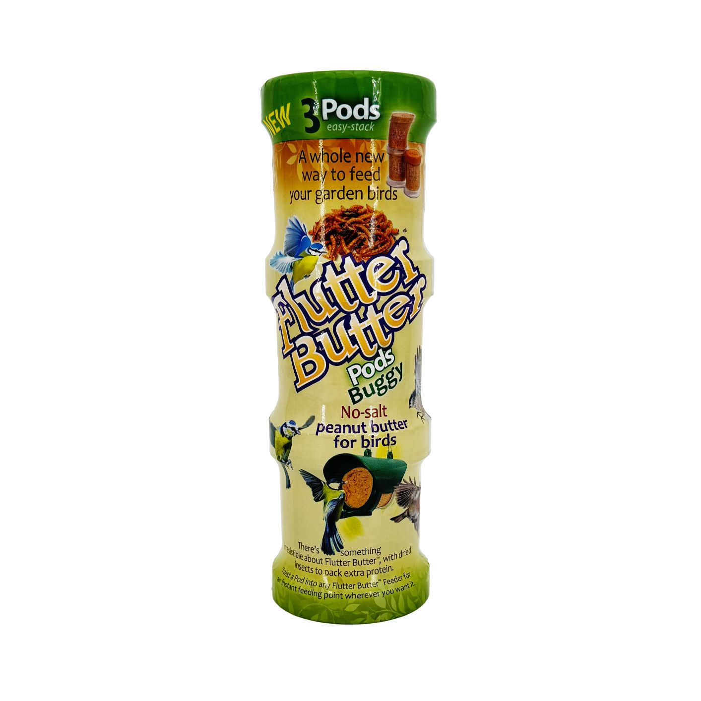 (Ref. JO0672)Lot de 3 pots de beurre de cacahuètes Flutter Butter aux insectes pour nourrir les oiseaux en hiver.