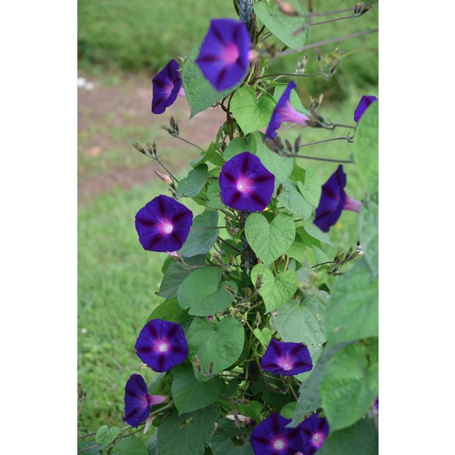 L’ipomée pourpre est une liane fleurie annuelle, facile à cultiver qui peut monter à 3 ou 6 mètres de hauteur. Elle va recouvrir très rapidement vos haies, vos terrasses et vos balcons, qui vont lui servir de tuteur car elle nécessite un appui solide. Elle offre une floraison généreuse de juillet aux premières gelées, avec de grandes fleurs pourpres au cœur blanc.