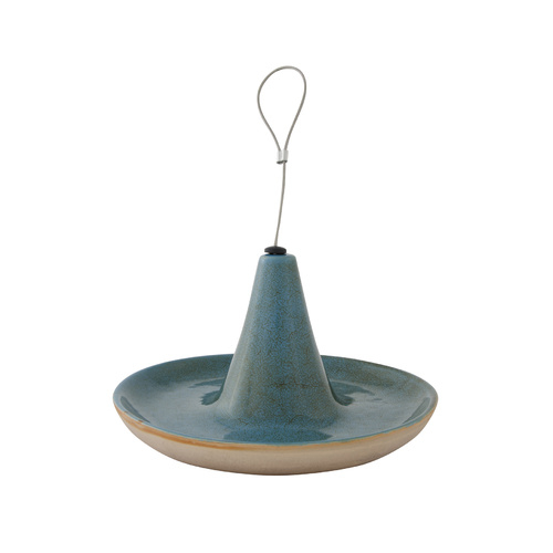 Abreuvoir en céramique à suspendre pour offrir aux oiseaux un point d'eau sécurisé, limitant l'accès aux prédateurs.