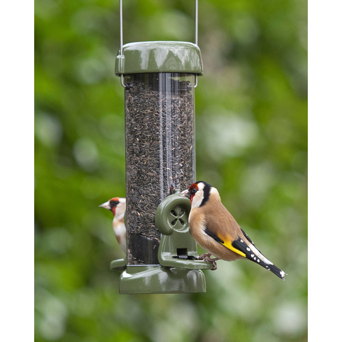 Le silo à Niger Ring Pull Click 18 cm est une mangeoire ultra résistante grâce à son tube en polycarbonate et son capot, son fond et ses ports en acier traité.