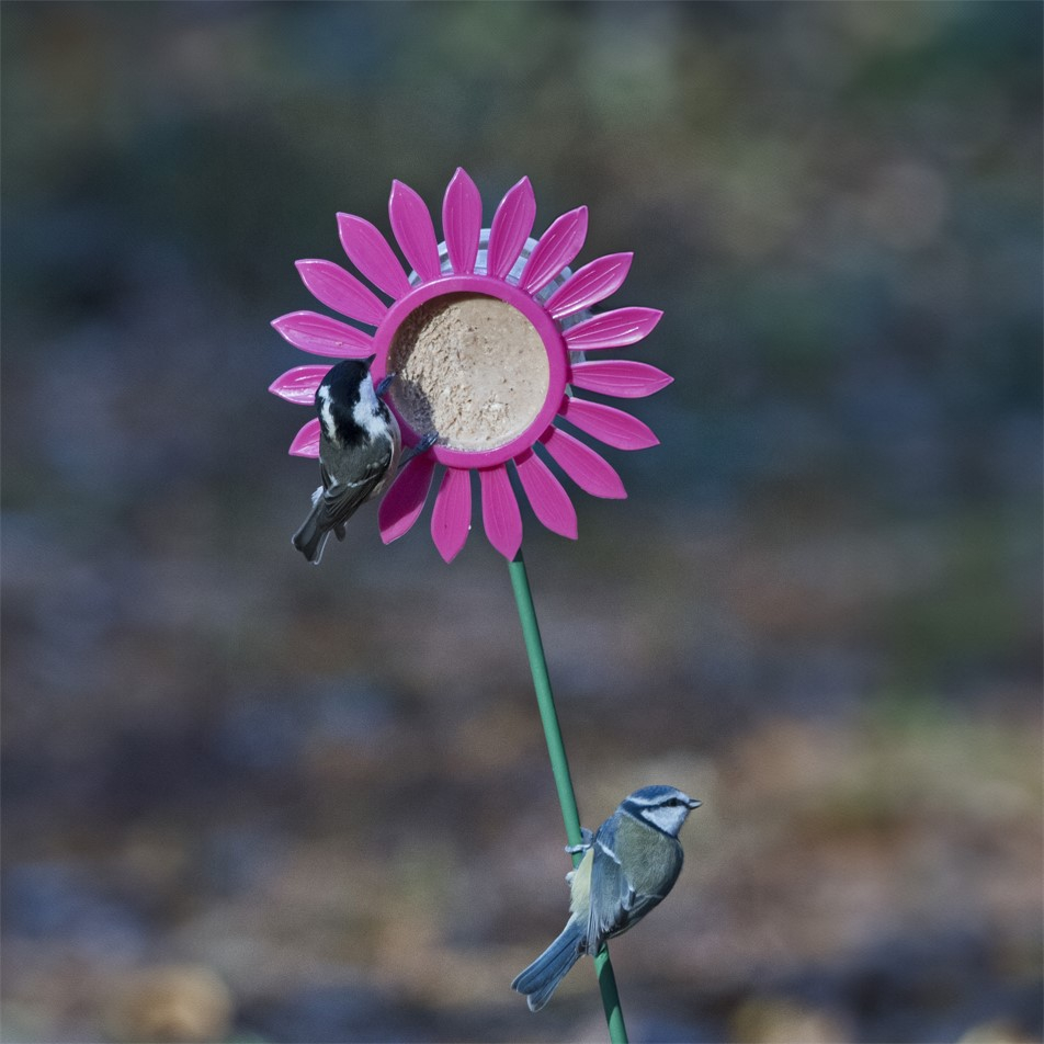 En forme de fleur, cette mangeoire à planter dans le sol décore votre jardin tout en accueillant les passereaux qui apprécient le beurre de cacahuètes, un aliment très riche en protéines.