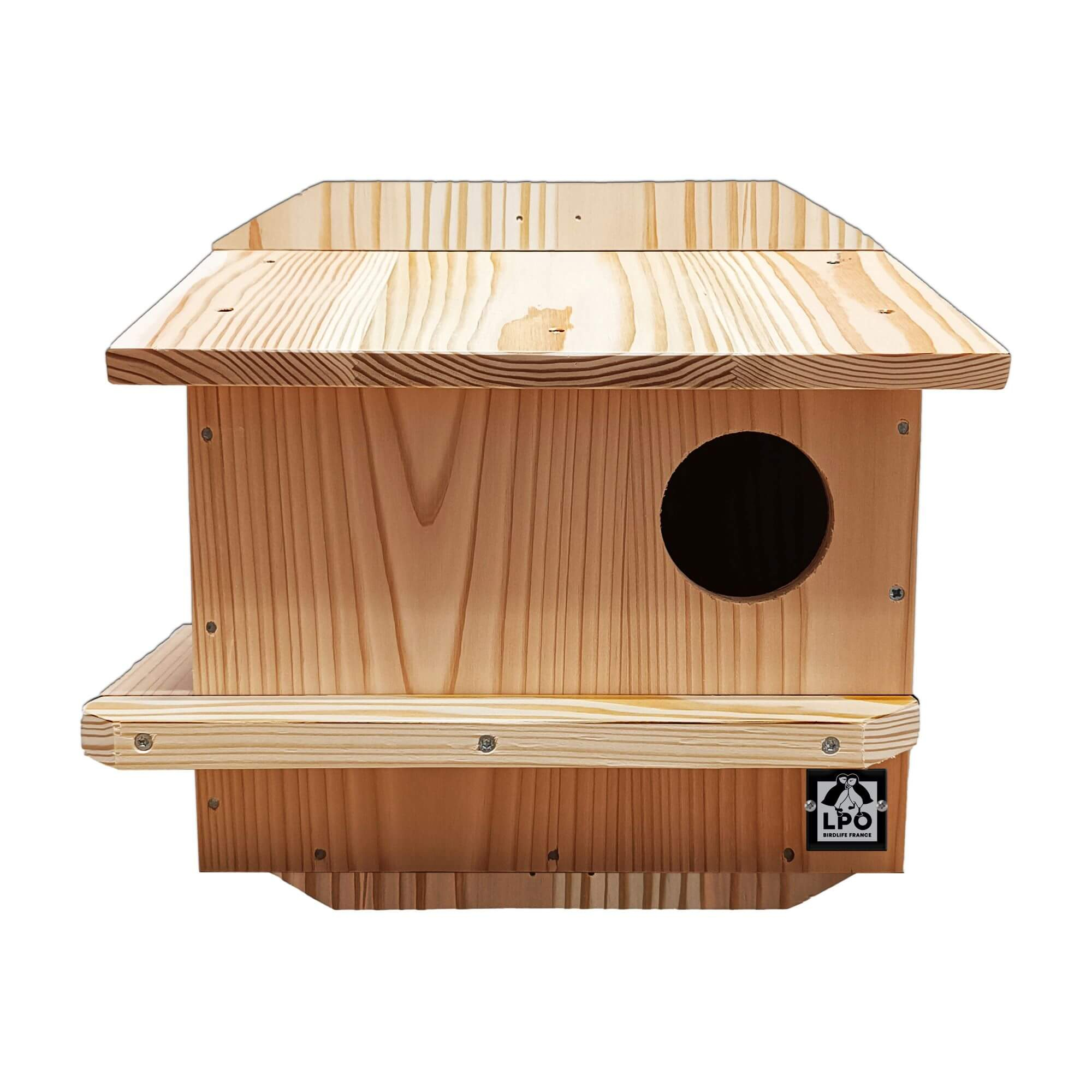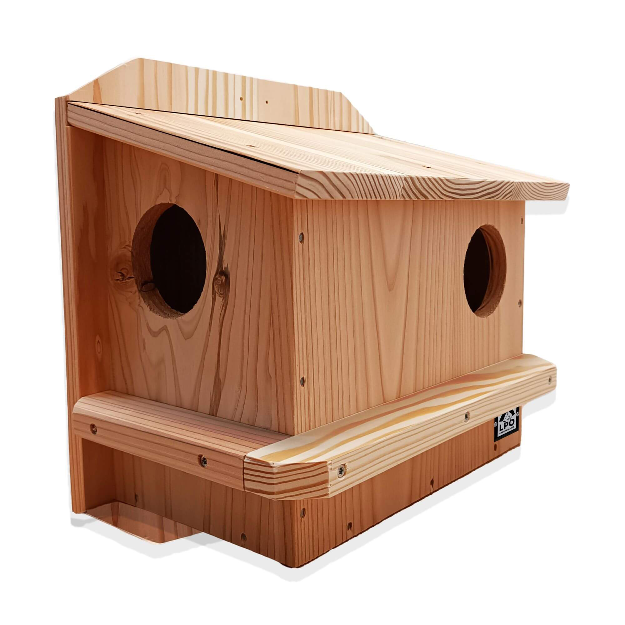 Doté d'une double entrée, il permet aux écureuils de pouvoir s'échapper si un prédateur pénètre dans le gîte. Une troisième entrée peut également être mise en place avec une ouverture optionnelle sur le côté du gîte. Grâce à cette dernière, les écureuils auront encore plus d'espace pour favoriser les temps de jeux autour du gîte, pour le plus grand bonheur des amateurs d'observation animale.