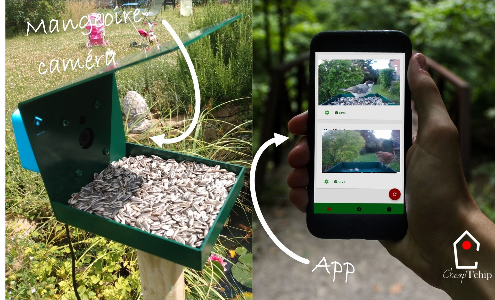Grâce à la caméra intégrée à la mangeoire, vous pourrez observer les oiseaux à tout moment à l'aide d'une application dédiée sur votre smartphone ou votre ordinateur.