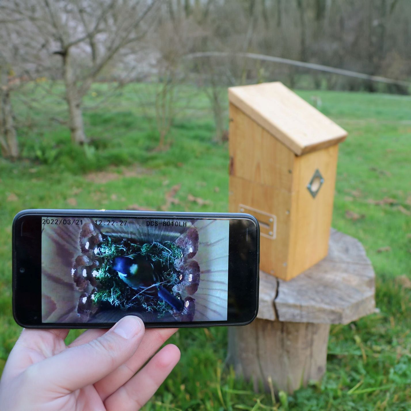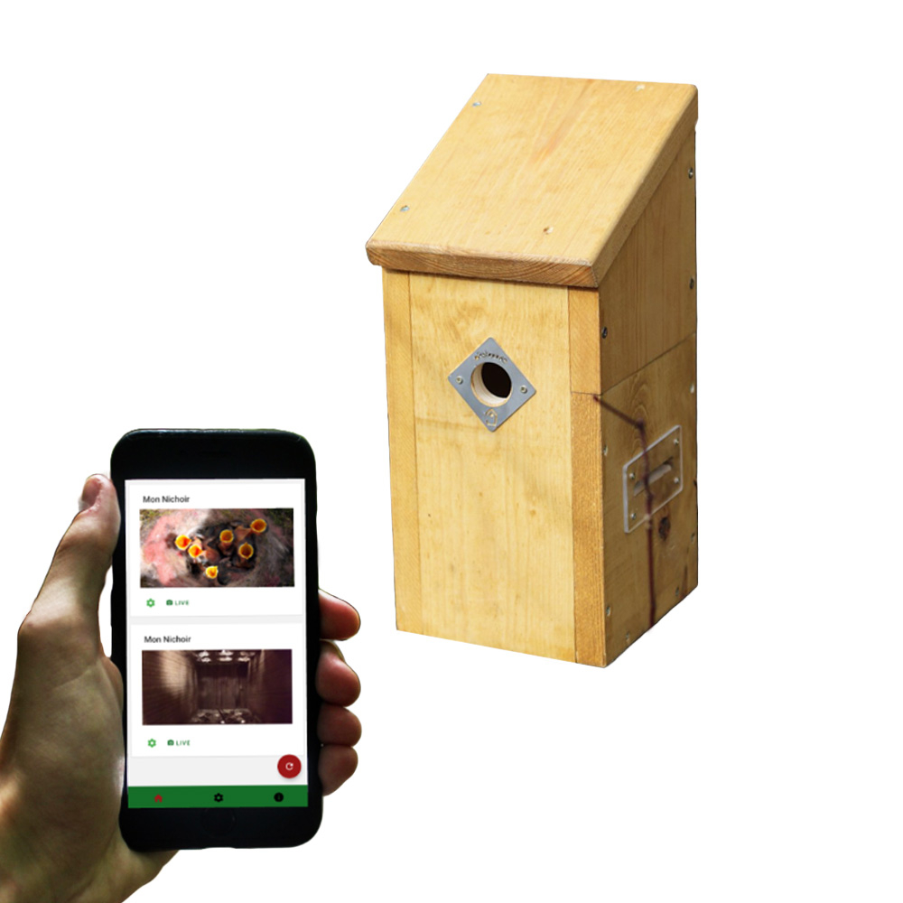 (Ref. JO1106)Nichoir connecté avec une caméra, un dispositif innovant conçu pour observer la vie des oiseaux depuis votre smartphone