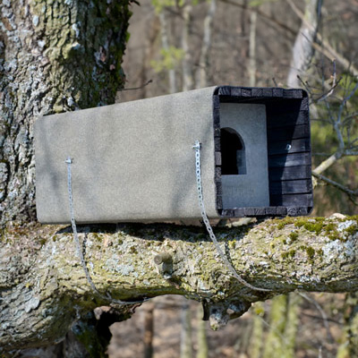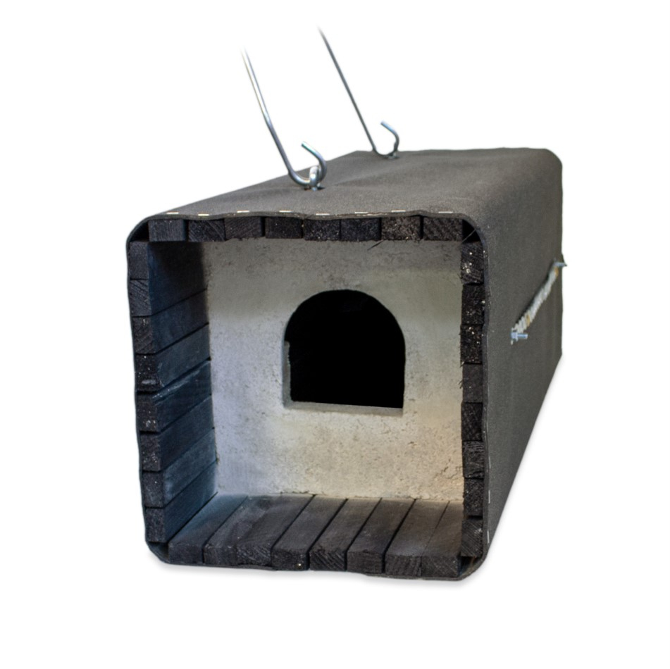 Livré avec une fixation sur un tronc d'arbre ou une branche, des clous en aluminium et une litière.