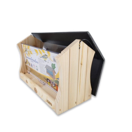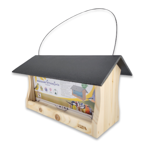 Cette mangeoire en sapin douglas fait partie de notre gamme fabriquée en Savoie dont le bois 100% français est issu de forêts gérées durablement.