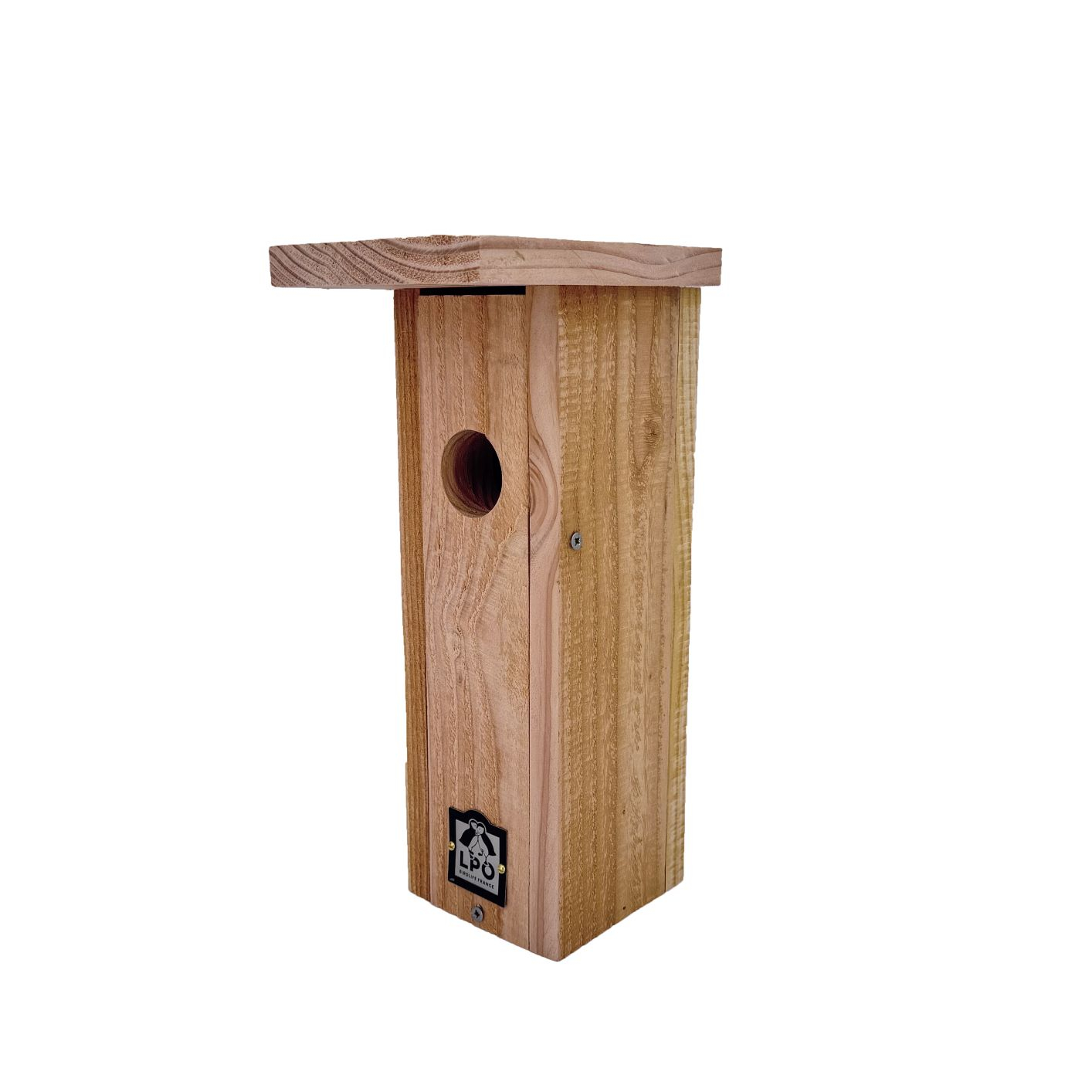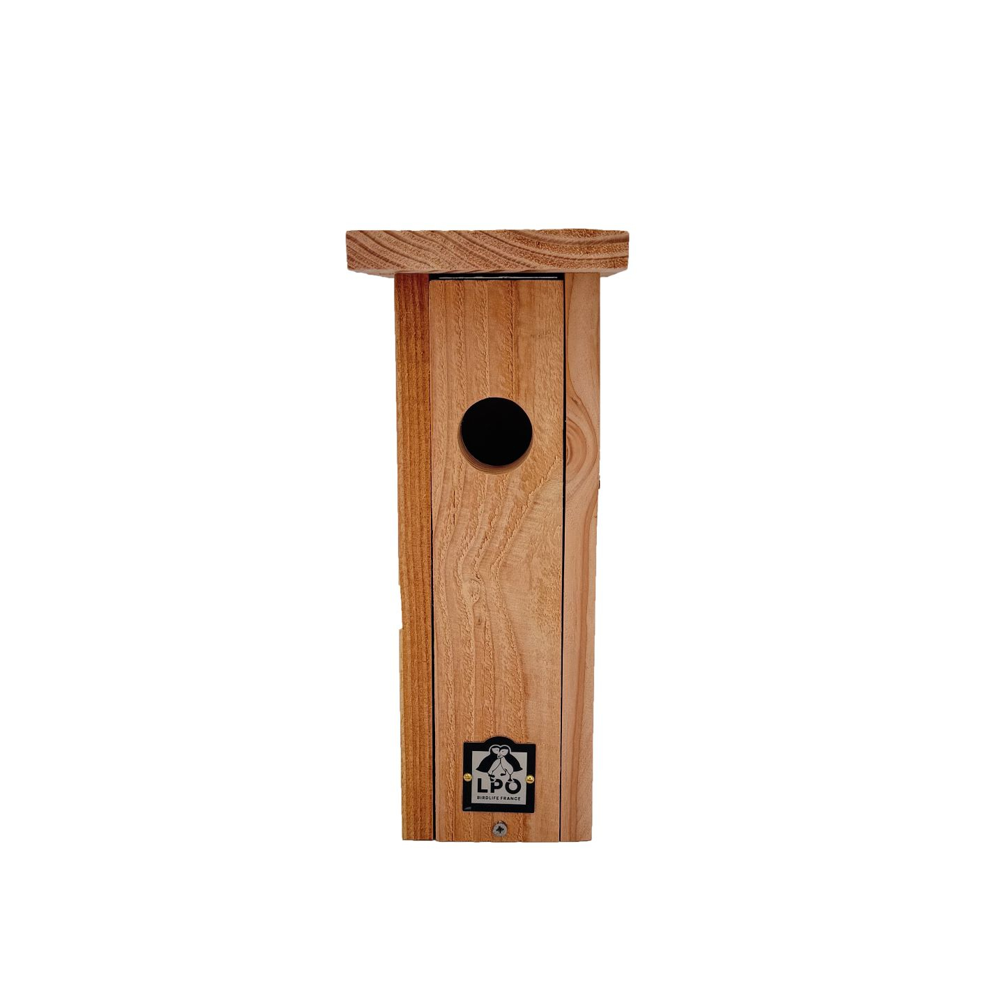 Trou d'envol 40 mm Matière(s) Bois Dimensions l.10,5 x H.33 x P.10,5 cm Marque LPO Pays de fabrication France