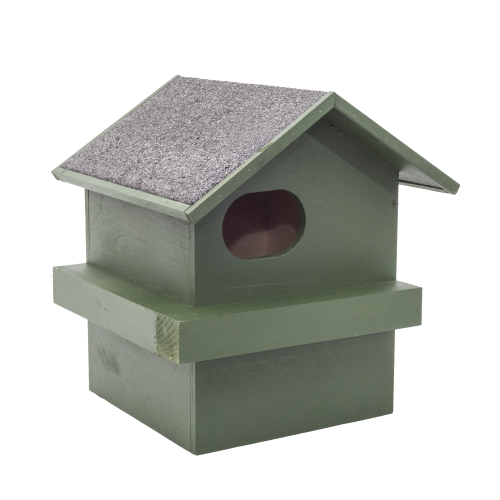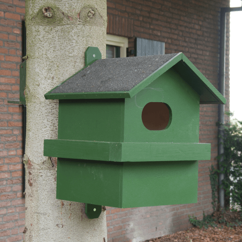Cet abri en contreplaqué a été conçu avec l'aide et les conseils de la fondation hollandaise pour la préservation des écureuils. Il dispose d'une large entrée pour que ces rongeurs sympathiques puissent aisément transporter leurs petits en toute sécurité. La bordure centrale en bois est destinée à faciliter l'accès au gîte, en particulier aux jeunes qui l'utiliseront pour entrer et sortir sans difficulté.